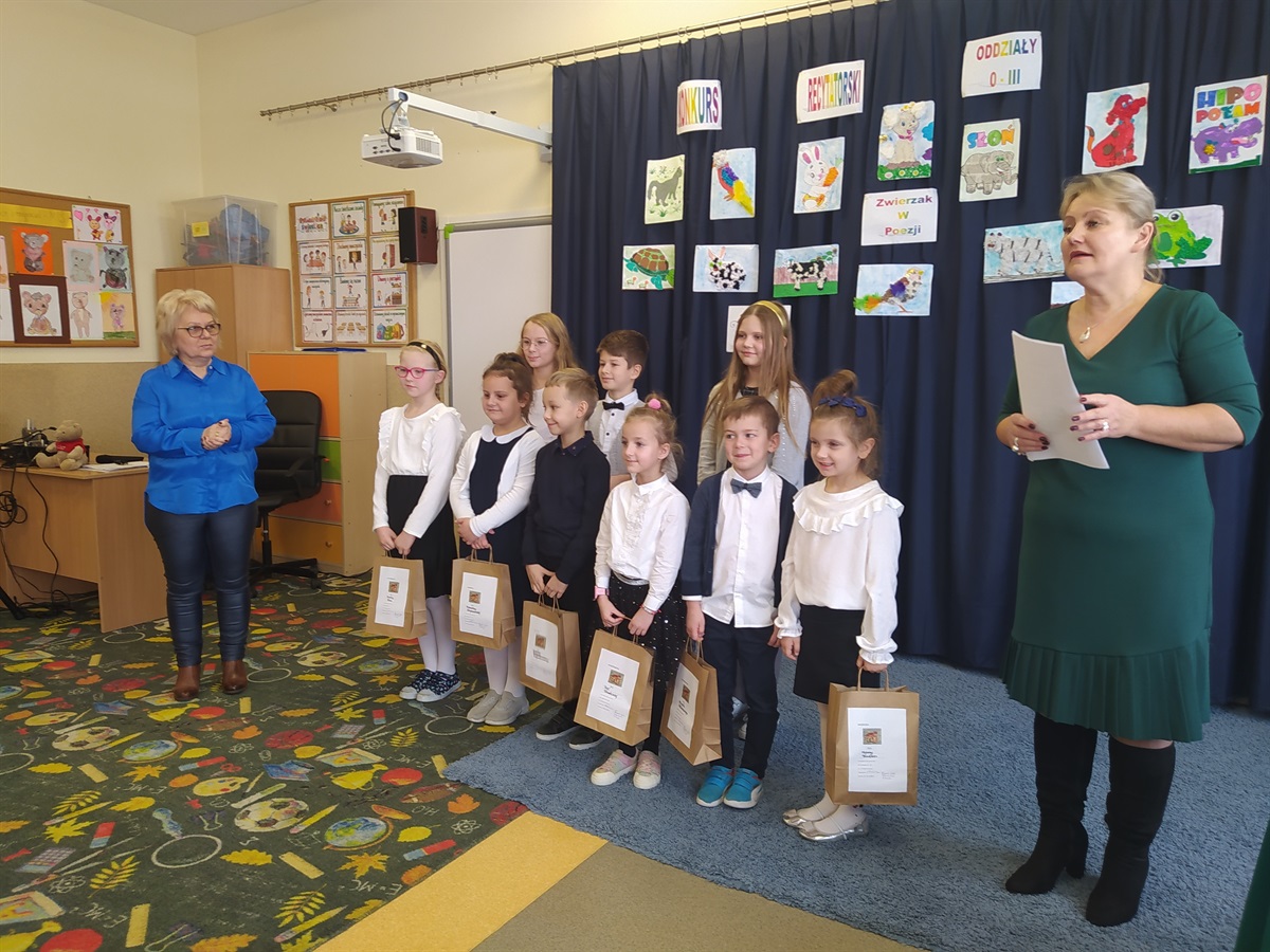 (z oddziału III); Juliusz Bogusławski, Hanna Kuźnar(z oddziału przedszkolnego); Karolina Szymańska (z oddziału I); zaś wyróżnienia otrzymali: Michał Dziubecki, Pola Słowicka (z oddziału przedszkolnego) oraz Paulina Piera (z oddziału II).