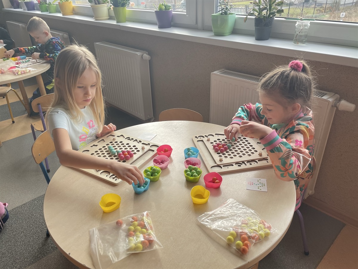 koncentrację, małą motorykę, cierpliwość, kreatywność, utrwalają kolory.