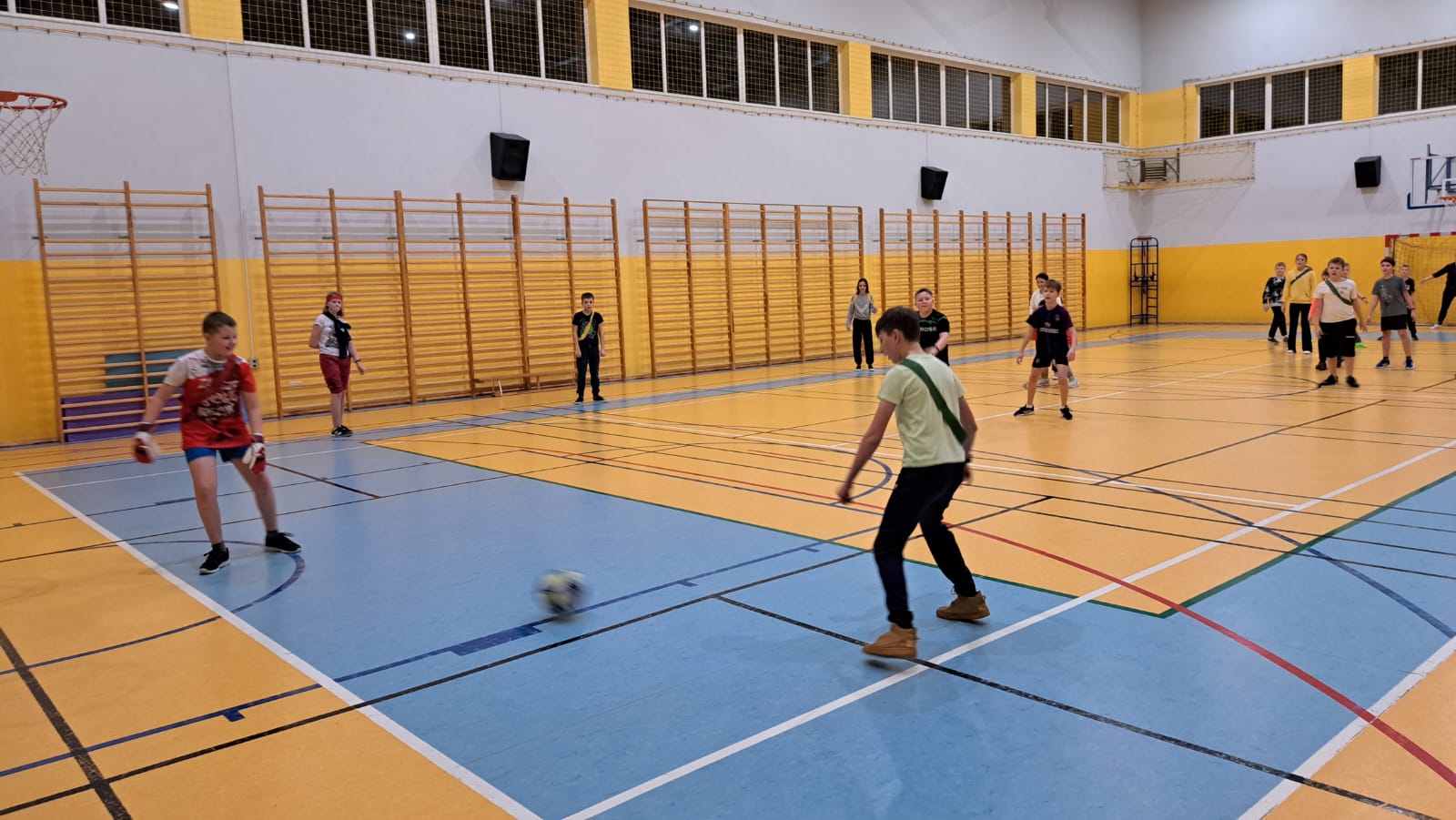 na salę gimnastyczna, gdzie rozegrany został mecz piłki nożnej. Rywalizacja