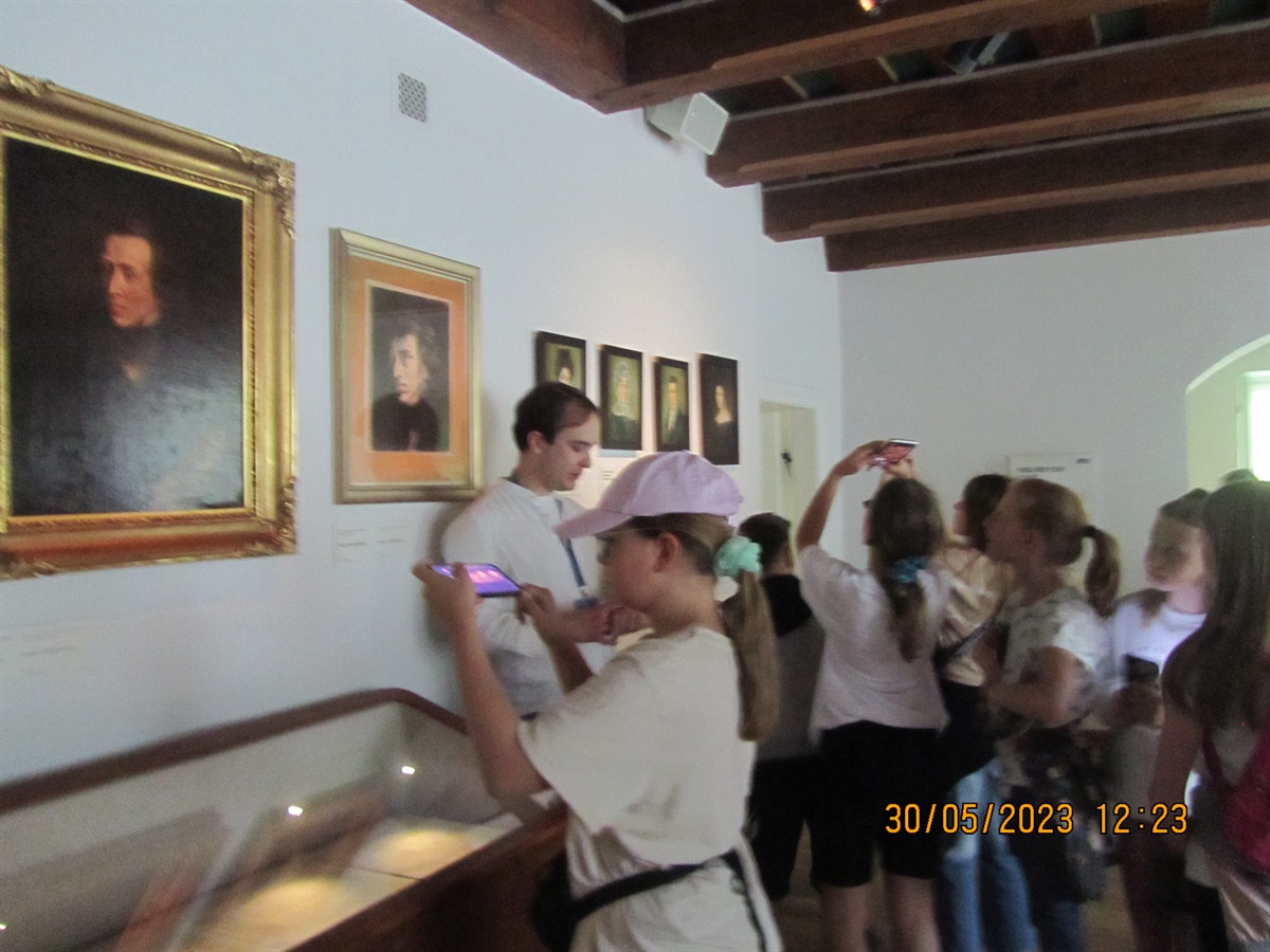 W ŻELAZOWEJ WOLI uczniowie zwiedzili Muzeum Fryderyka Chopina z ekspozycją pamiątek rodzinnych Chopinów. Poznali fakty z życia najwybitniejszego polskiego kompozytora. Z zaciekawieniem oglądali bogactwo flory występujące w przylegającym do dworu parku.