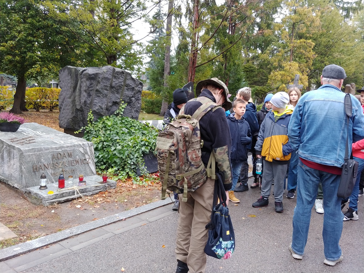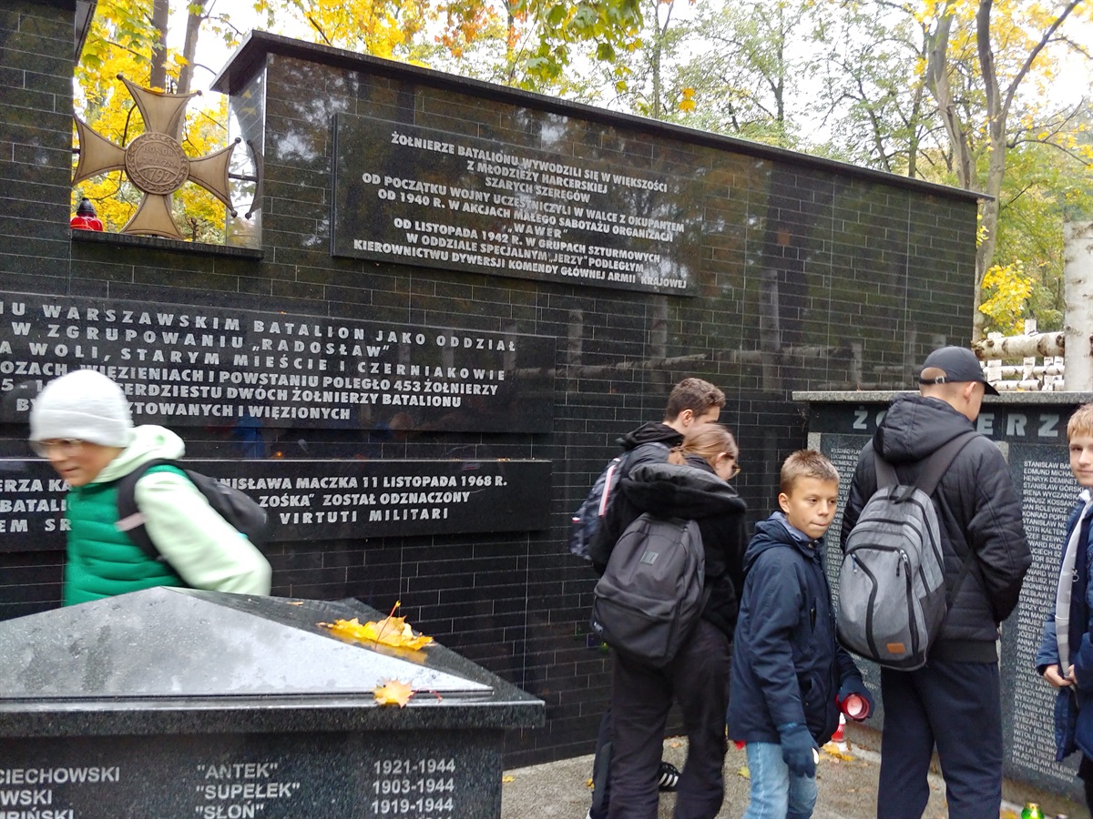 20 października 2023 r. odbyła się wycieczka do Warszawy - Szlakiem ,,Kamieni na szaniec". Uczestniczyli w niej uczniowie kl. IV-VIII. Na początku pojechaliśmy na Cmentarz Powązkowski. Oddaliśmy tam  hołd walczącym za ojczyznę w czasie II wojny światowej. Przewodnik opowiadał nam o losach chłopców z Szarych Szeregów, o których czytamy w  książce Aleksandra Kamińskiego pt. ,,Kamienie na szaniec". Kolejnym punktem programu było Muzeum Powstania Warszawskiego. Dowiedzieliśmy się jak dzielnie bronili się mieszkańcy naszej stolicy oraz jak trudno było ją odbudować po wojnie. Uczniowie widzieli również pozostałości po Pawiaku-wiezieniu, które było świadkiem masowych zbrodni na ludności polskiej. Podczas przesłuchań niemcy zamordowali tam ok. 37 tyś. ludzi. Następnie pojechaliśmy na Stare Miasto. Przewodnik opowiadał nam o historii stolicy. Ostatnim punktem wycieczki była wizyta w McDonaldzie. Organizatorem wyjazdu była p. Anna Strzopa-Machulska, opiekunami p. Izabela Dybała, p. Aneta Lipa oraz p. Milena Baranska.