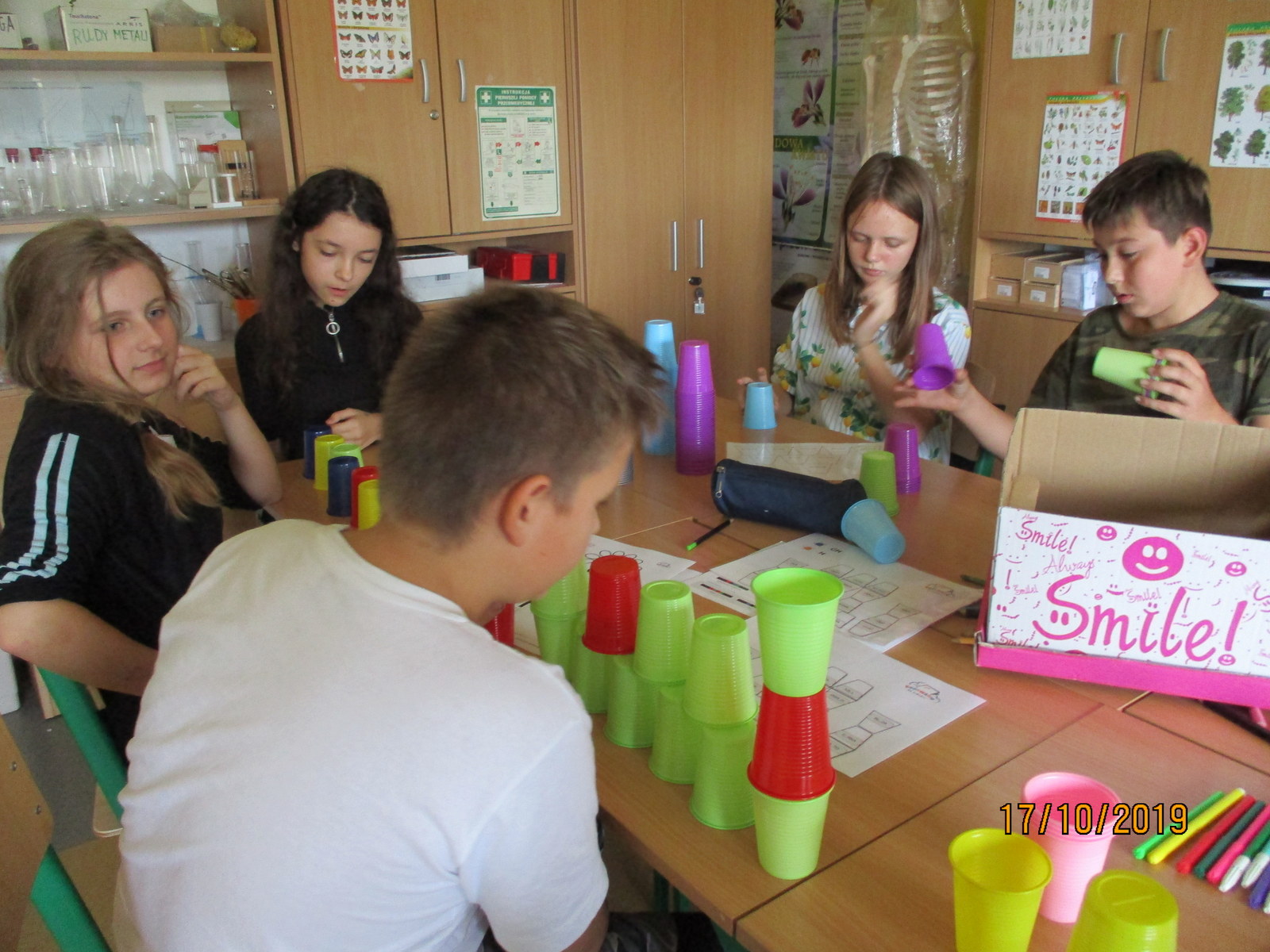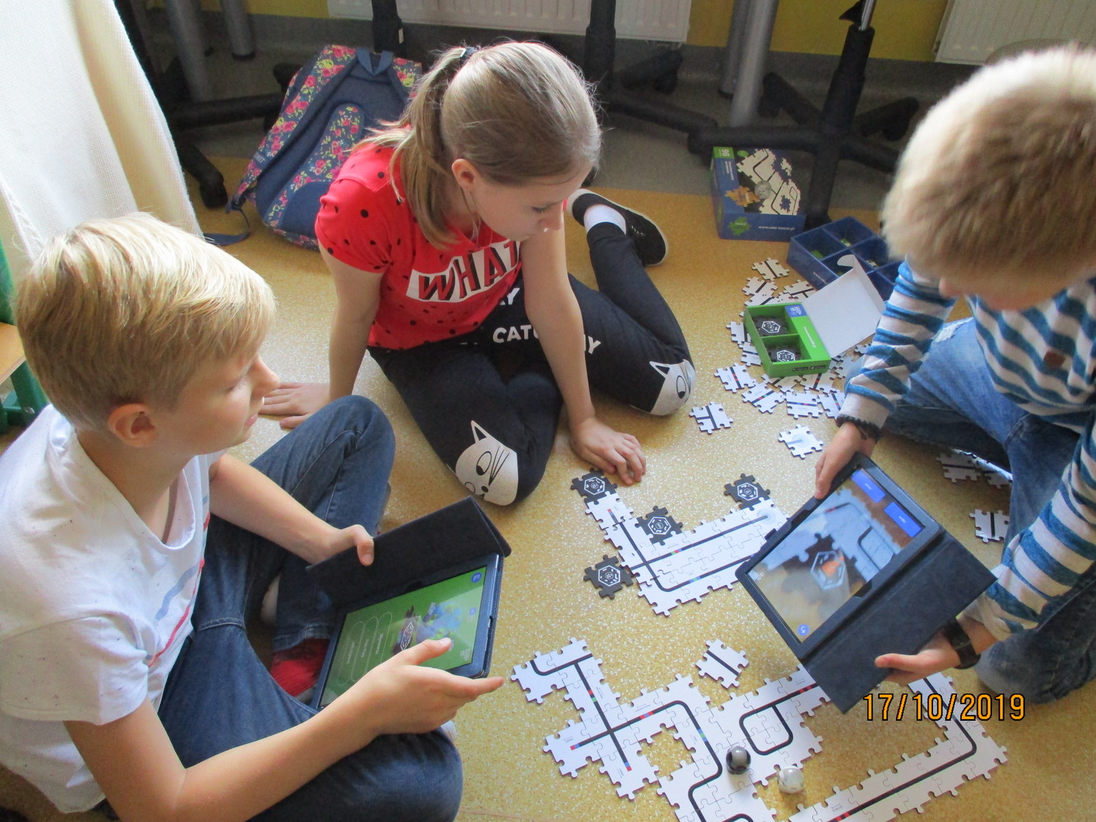W czasie zajęć uczniowie z klasy VIA i VIB zapoznali się z podstawami programowania. Pracowali z ozobotami, układali trasy przejazdów ozobotów, kodowali kubeczkowe wieże.