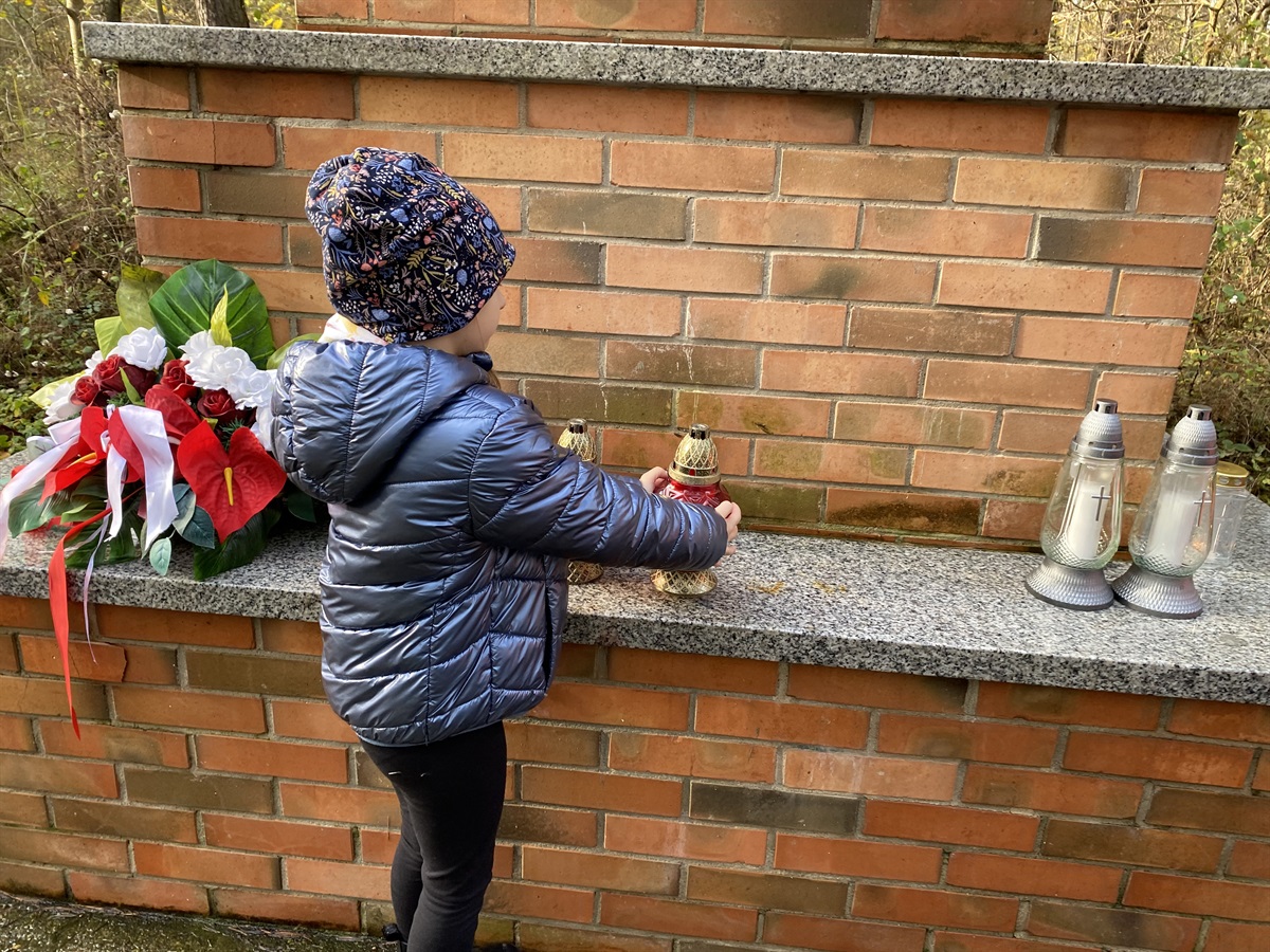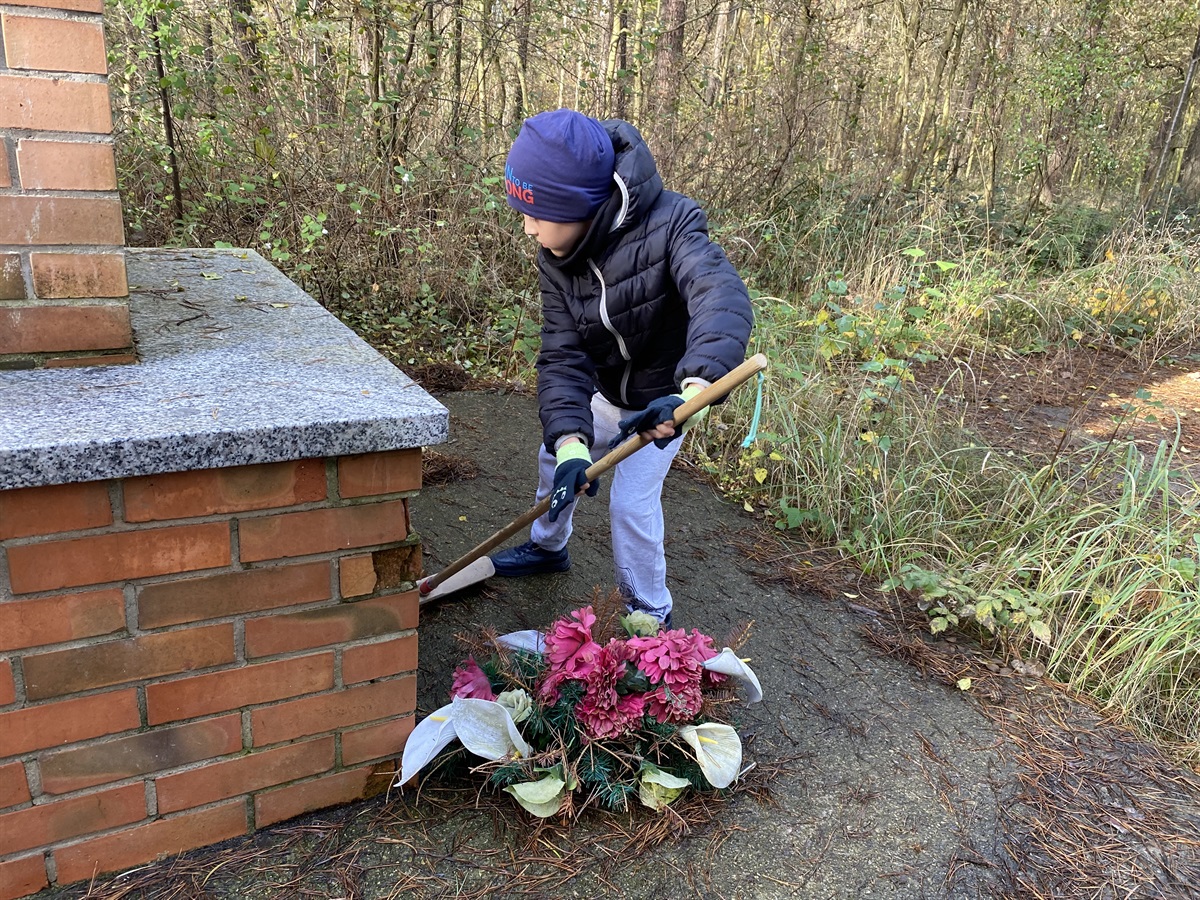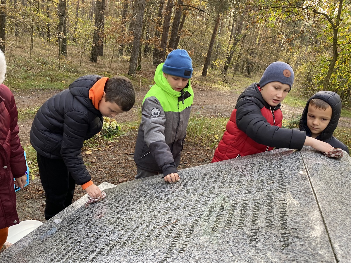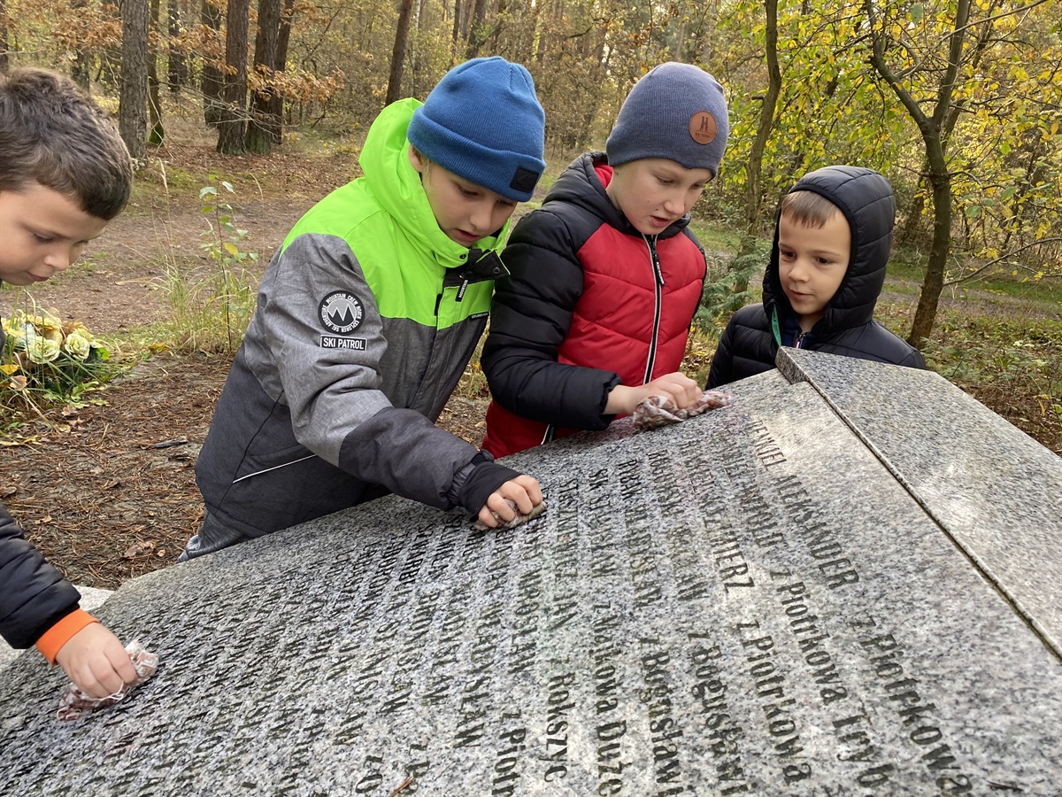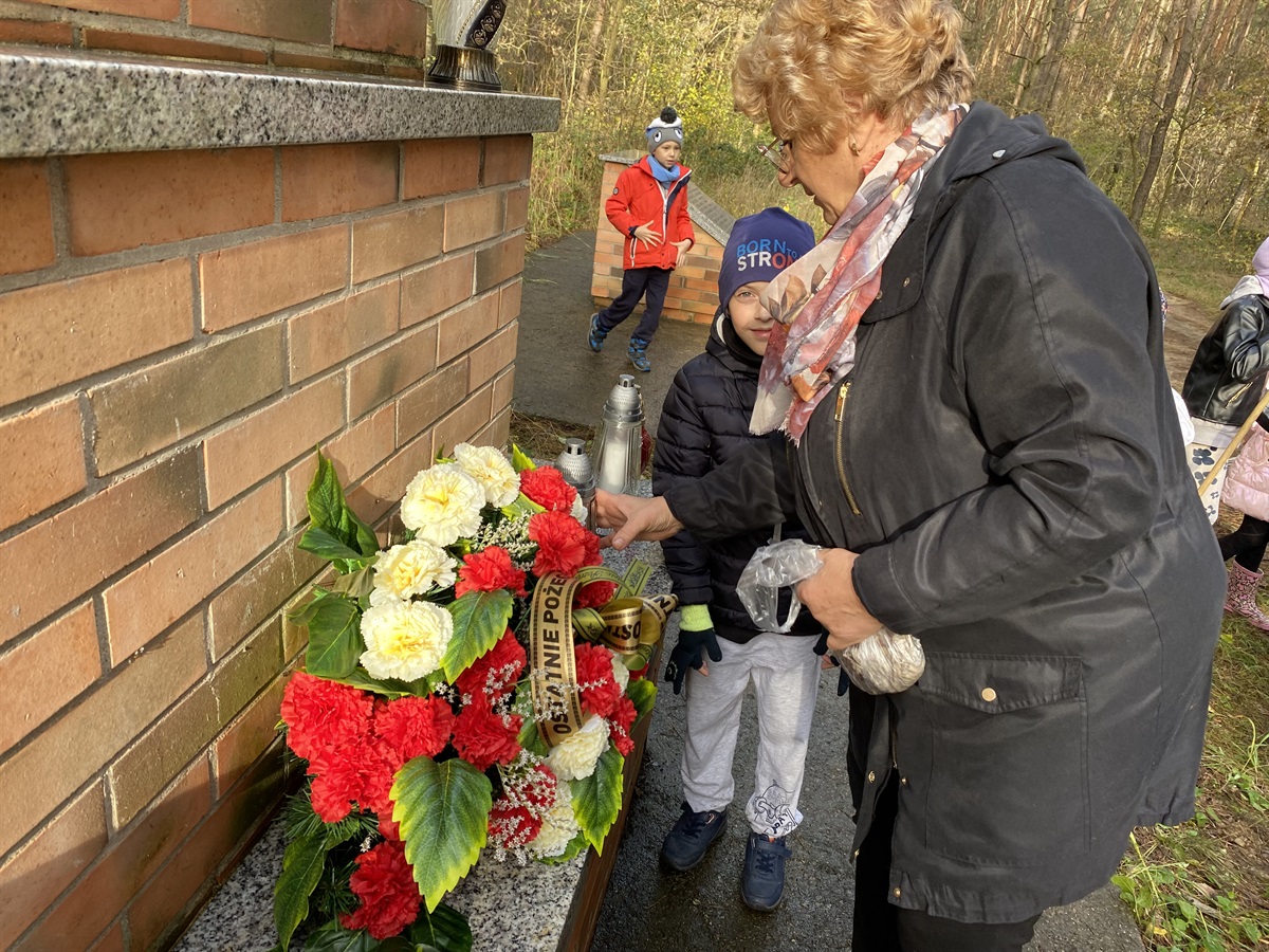 Tam znajduje się pomnik Polaków, którzy zostali zastrzeleni przez nazistowskich okupantów. W związku z tym, że Szkoła  Podstawowa im. Margarethy Kamprad od wielu lat dba o tą mogiłę, to naszym obowiązkiem jest kontynuacja tego zadania. Uczniowie naszej szkoły wraz z nauczycielami uporządkowali mogiłę, położyli wiązankę i zapalili znicze, oddając w ten sposób hołd Polakom, którzy rok przed zakończeniem II wojny światowej oddali swoje  życie za wolność  ojczyzny – Polski.