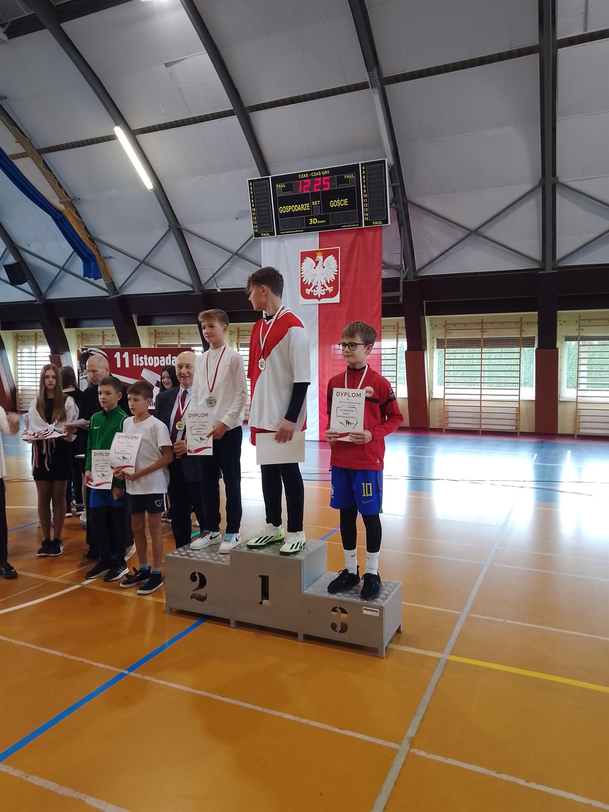 Adam Wroński, który zajął czwarte miejsce w biegu na 60m.,Wszystkim uczestnikom naszej reprezentacji należą się gratulacje za osiągnięcie bardzo dobrych wyników oraz życzymy dalszych sukcesów sportowych. Skład reprezentacji: Lilianna Nowak          Wiktoria KawnikHelena MakowskaBartłomiej MamełkaStanisław MiśkiewiczAnna MakowskaJakub JezierskiOliwier SłowickiMichał BajerowskiAdam Wroński Filip GołębiowskiKatarzyna KlimczykKarol KlimczykAdam OstrowskiMiłosz Kowalski   Izabela Dybała Nauczyciel wychowania fizycznego