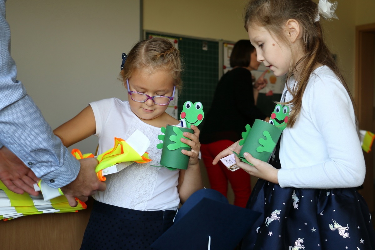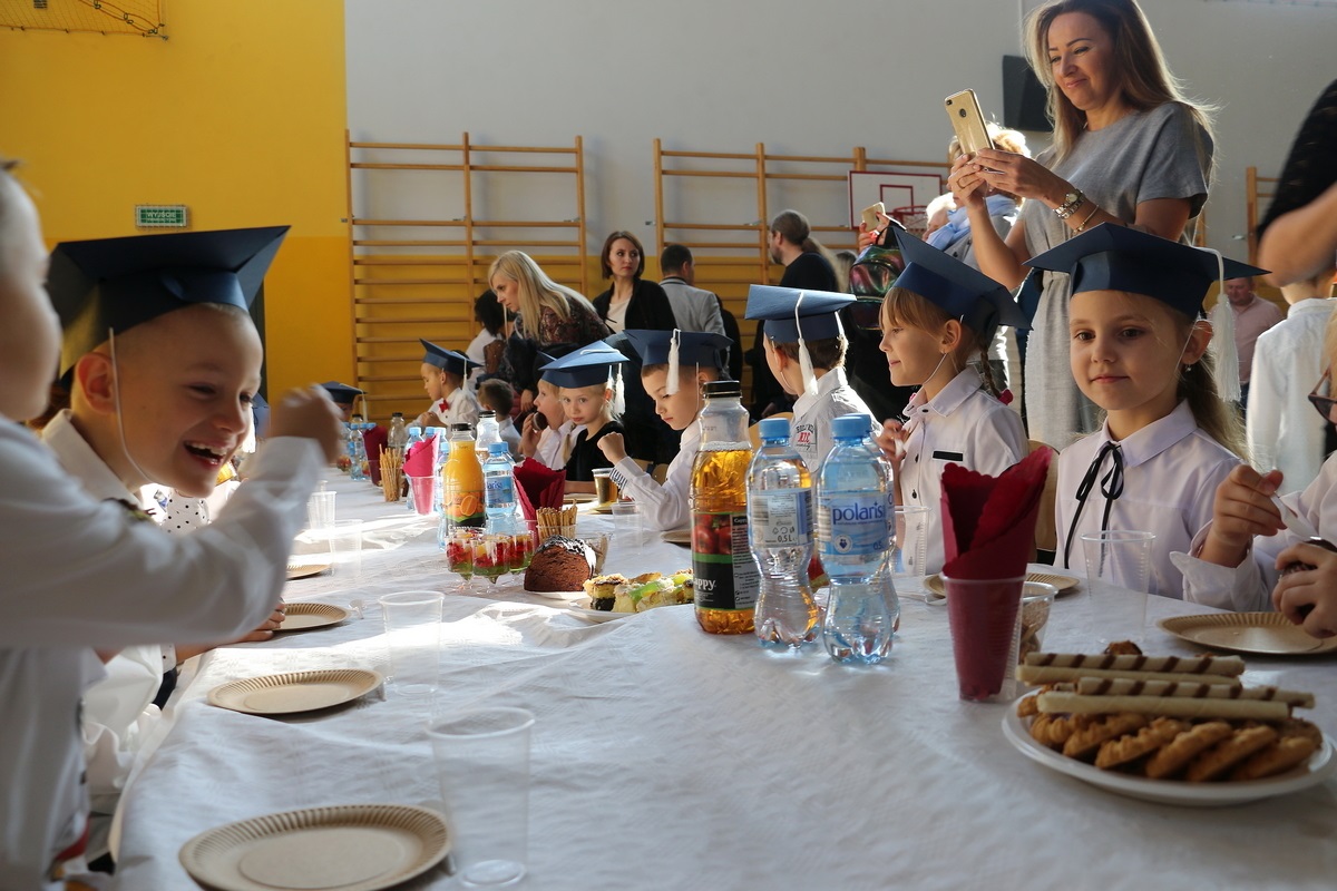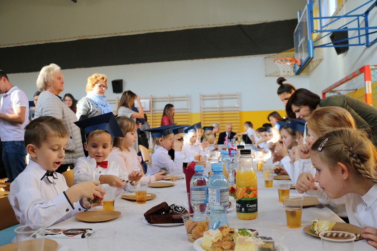 Swoimi umiejętnościami i zachowaniem udowodnili, że w pełni zasługują na miano ucznia naszej szkoły, co potwierdziła pani dyrektor, dokonując symbolicznego pasowania. Niemałą niespodziankę sprawili pierwszakom uczniowie oddziału II, obdarowując ich przybornikami szkolnymi, ale nie był to jedyny prezent otrzymany w tym dniu. Uściskom, uśmiechom  i upominkom nie było końca. Po części oficjalnej na gości i drogich pierwszoklasistów czekał słodki poczęstunek przygotowany przez rodziców.