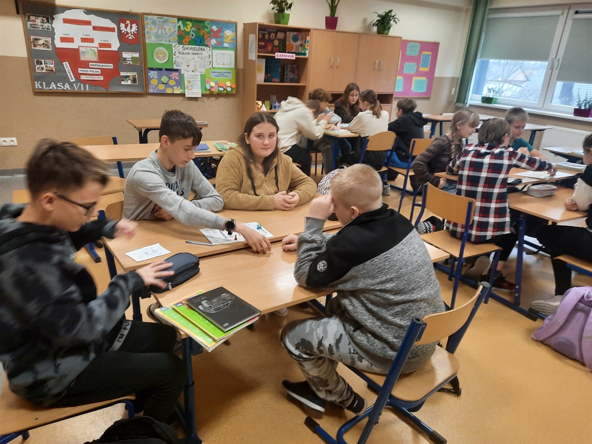 -  gry, łamigłówki i zagadki zakodowane za pomocą tabliczki mnożenia. Tutaj swoją wiedzą wykazywali się również uczniowie z klas młodszych, którzy pięknie kolorowali tabliczkowe obrazki, z dużym zaangażowaniem pracowali nad rozwiązaniem zagadek oraz gier planszowych.