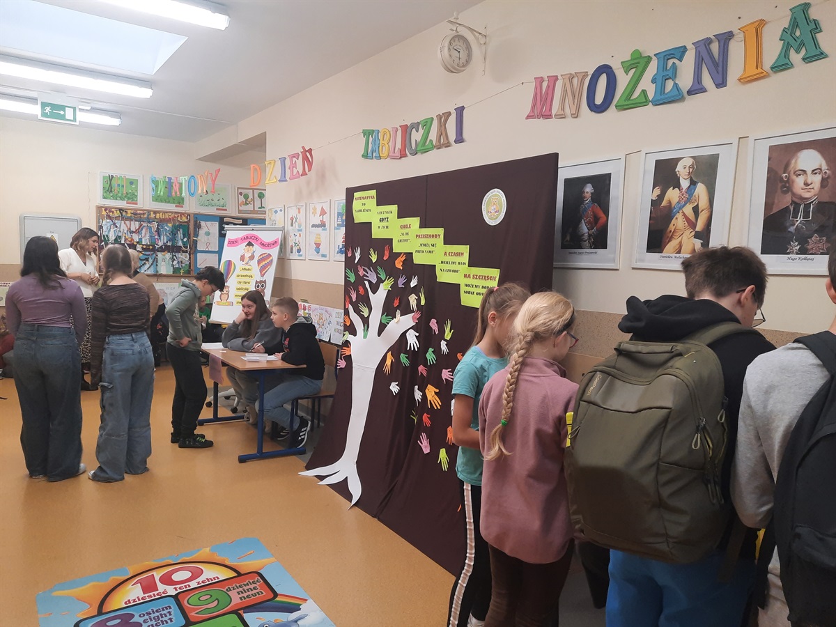 W dniu 22 listopada 2023r. nasza szkoła uczestniczyła w XIII Światowym Dniu Tabliczki Mnożenia  organizowanym pod hasłem: „Młodsi sprawdzają, czy starsi tabliczkę mnożenia znają!”. Celem akcji było propagowanie formy nauczania-uczenia się matematyki poprzez zabawę. Uczniowie naszej szkoły od wielu lat uczestniczą w obchodach tego święta.  W tym dniu królowały gry, zabawy i konkursy matematyczne z tabliczką mnożenia w roli głównej. Akcja promowana była poprzez: