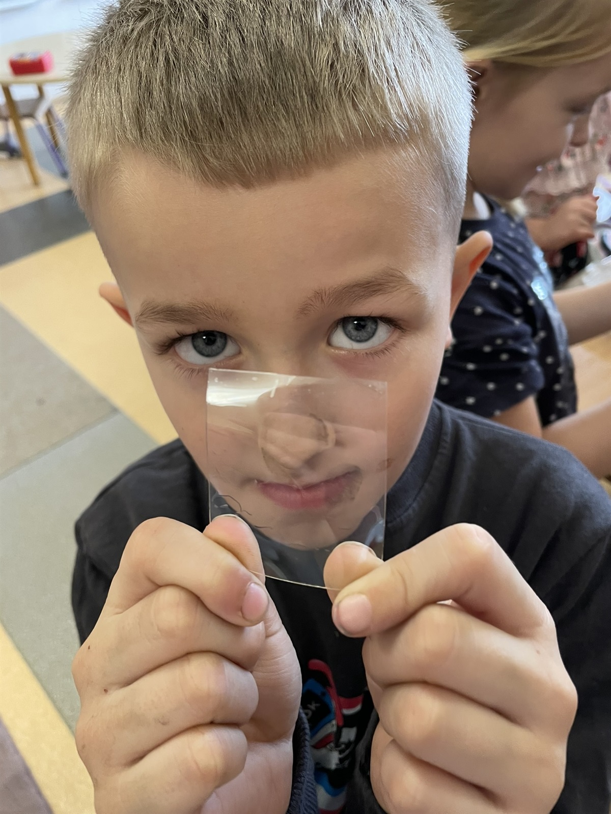 w specjalnie do tego przygotowanej folii. Śmiechu i radości było co nie miara. Wszystkie dzieci były pod ogromnym wrażeniem przeprowadzonej lekcji.