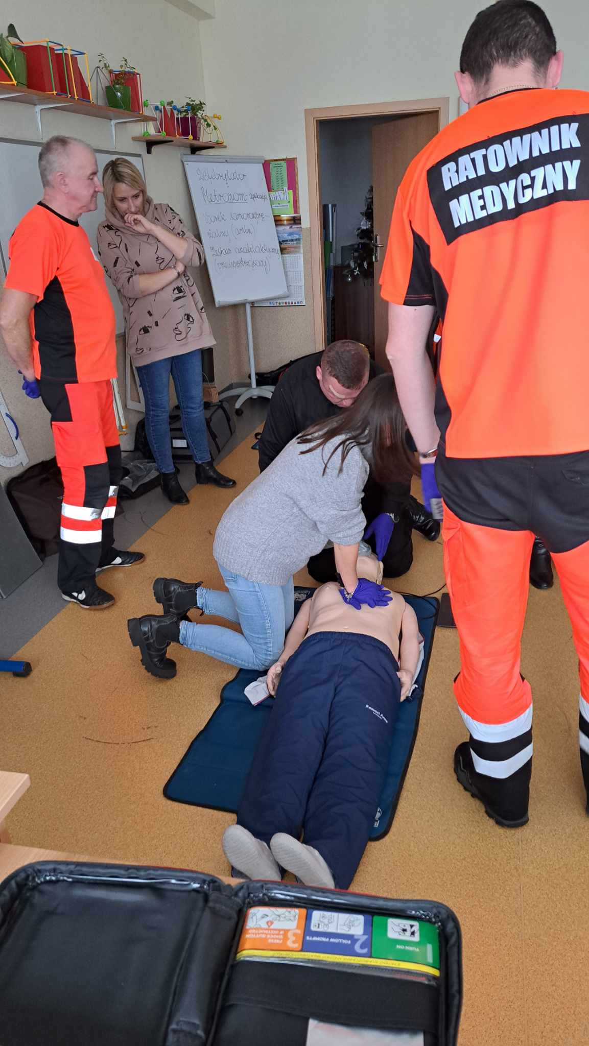 Nasi pracownicy przypomnieli sobie jak postępować w przypadku zasłabnięcia, omdlenia, braku komunikacji z pacjentem, oparzenia lub odmrożenia, braku oddechu i pracy serca.