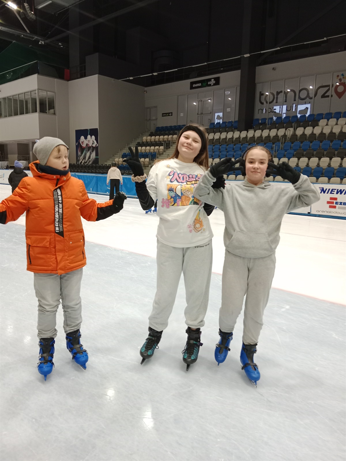 Dnia 24 stycznia 2024 r. uczniowie klas IV i V pojechali na lodowisko do Areny Lodowej w Tomaszowie Mazowieckim. Dzieci mogły podszkolić swoje umiejętności jazdy na łyżwach a przede wszystkim aktywnie spędzić czas. Po godzinnym treningu wszyscy uczestnicy przeszli do pobliskiej kręgielni, w której urządzili zawody drużynowe. Ostatnim punktem wycieczki była pizzeria „Trufla” mieszcząca się w Tomaszowie Mazowieckim. Na stołach obok pizzy pojawiły się też pyszne desery i inne smakołyki polecane przez lokal. Uczniowie miło spędzili czas i wyrazili chęć ponownego zorganizowania takiej wycieczki.