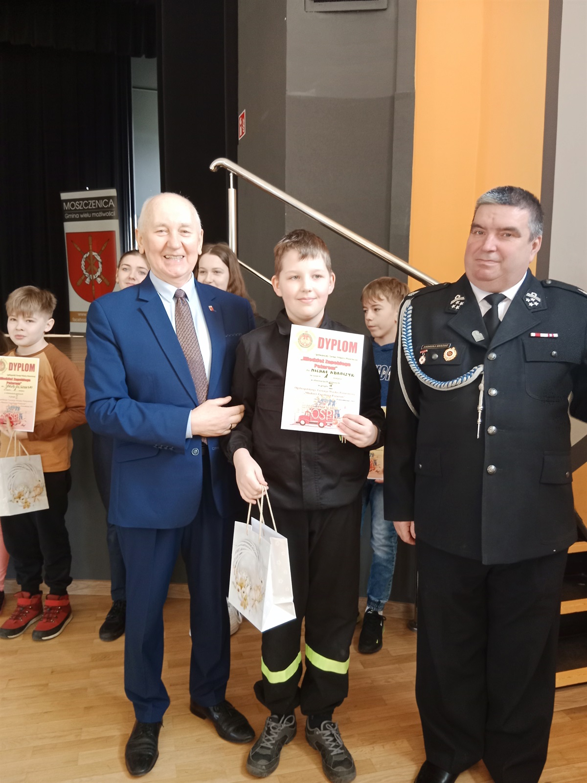 Dnia 14 marca 2024 r. w Gminnym Ośrodku Kultury i Sportu w Moszczenicy odbyły się eliminacje gminne Ogólnopolskiego Turnieju Wiedzy Pożarniczej pn. „Młodzież Zapobiega Pożarom”. Uczniowie zmierzyli się z testem wiedzy z zakresu pożarnictwa oraz pierwszej pomocy przedmedycznej. Szkołę Podstawową w Jarostach reprezentowali, w grupie klas I- IV: Kacper Pomazany z kl. III, Daria Dajcz i Lena Skrzypek z kl. IV. W grupie klas V-VIII byli to: Jakub Gołębiowski  i Mariusz Klimczyk z kl. VI, Wiktoria Dajcz z kl. VII oraz zwycięzca ubiegłorocznego turnieju eliminacji gminnych: Michał Adamczyk z kl. VI. Ostatecznie, po wyrównanej walce i dogrywkach Kacper Pomazany z kl. III zajął 3 miejsce w grupie młodszej, Daria Dajcz z kl. IV zajęła 2 miejsce w grupie młodszej, a Michał Adamczyk z kl. VI wywalczył I miejsce w grupie starszej. Michał będzie reprezentował gminę Moszczenica w etapie powiatowym. Wszyscy zwycięzcy należą do Młodzieżowej Drużyny Pożarniczej mieszczącej się w OSP Jarosty i byli przygotowywani przez p. Marcina Adamczyka. Gratulujemy i życzymy kolejnych sukcesów.