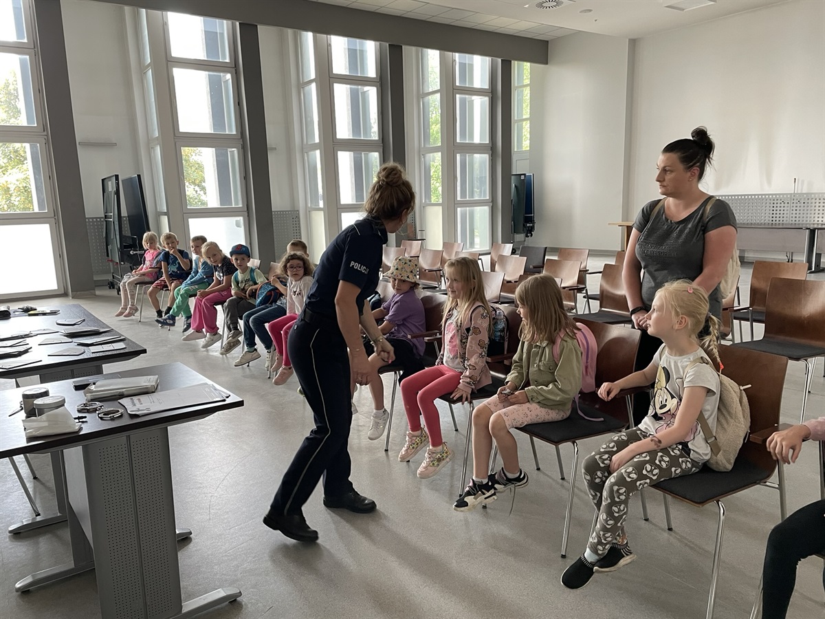 W środę (29.05.2024 r.) przedszkolaki z SP Jarosty odwiedziły Komendę Miejską Policji w Piotrkowie Trybunalskim. W trakcie wycieczki najmłodsi mogli poznać technikę śledczą czyli daktyloskopię poprzez odciśnięcie swoich palców oraz ręki na specjalnym papierze, poszukać odcisków linii papilarnych na papierze za pomocą proszku magnetycznego. Na dzieci czekało również kreatywne miasteczko ruchu drogowego, gdzie ruchem sterował prawdziwy policjant. Do pojazdów można było wejść i wczuć się w rolę kierowcy lub pasażera wozu policyjnego, autobusu lub pojazdu osobowego. Przy okazji przedszkolaki dowiedziały