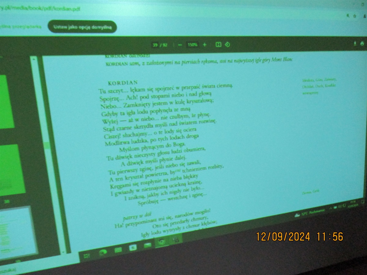 Kolejny raz włączyliśmy się w akcję promującą czytanie dzieł narodowych zapoczątkowaną przez Parę Prezydencką. W piątek 13 września, w ramach Narodowego Czytania, poznaliśmy losy „Kordiana” Juliusza Słowackiego.