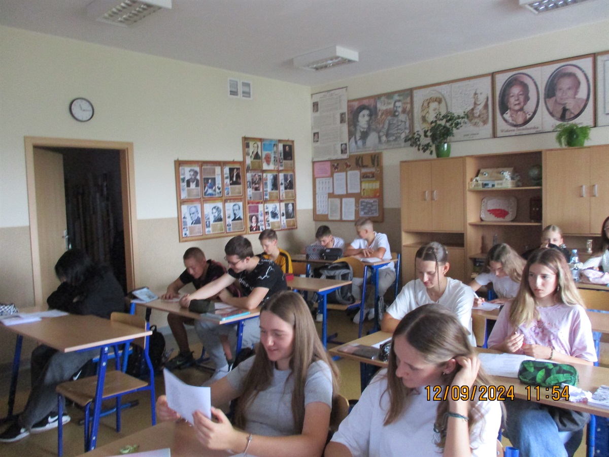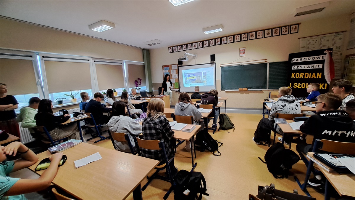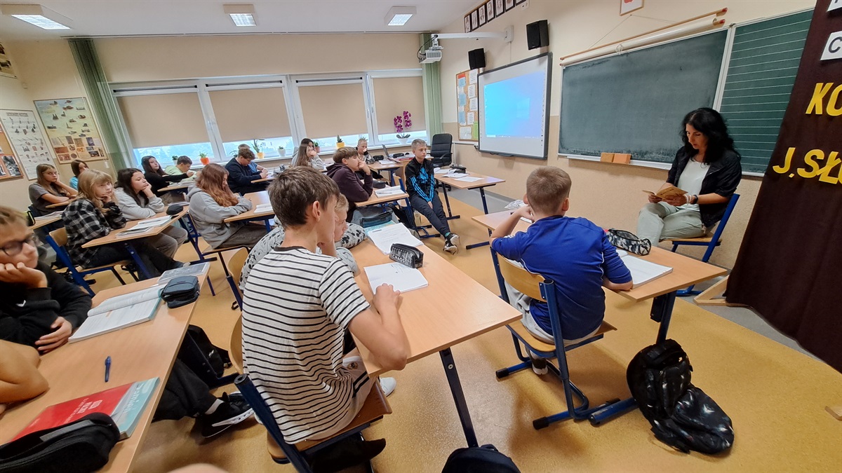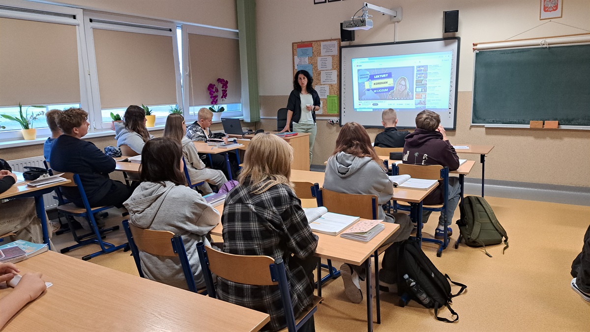 a także historię narodu polskiego walczącego o niepodległość, młodzież obejrzała fragmenty filmiku streszczającego utwór. Kolejnym elementem obchodów było odczytanie przez panią bibliotekarkę oraz chętnych uczniów, fragmentów dzieła oraz omówienie treści.