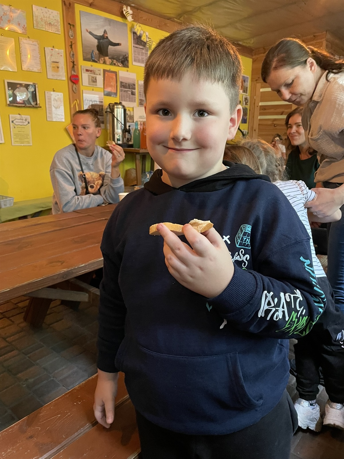 Zatem dzięki wizycie w Pasiece w Lipce prowadzonej przez sympatyczną pszczelarkę Panią Marzenę Serfińską dowiedzieliśmy się wielu ciekawych rzeczy na temat życia tych pracowitych owadów. Doceniliśmy w sposób szczególny ich znaczenie dla ludzkości. Oprócz ciekawych anegdotek o pszczołach, zasmakowaliśmy się w chlebie z miodem lipowym i cynamonowym. Stworzyliśmy wyjątkowe świece woskowe i dowiedzieliśmy się, że wosk wypacany jest z brzuszka pszczółek miodnych. Po tylu wrażeniach wybraliśmy się do malowniczej pasieki, by zobaczyć rodzinę pszczół zgromadzony na plastrze pochodzącym z ula. Podziwialiśmy pracowite pszczółki i rozpychającą się wśród nich królową, która oznaczona była czerwonym kółeczkiem. Następnie zjedliśmy pyszne kiełbaski. Najedzeni i bogatsi o wiedzę powróciliśmy do szkoły.