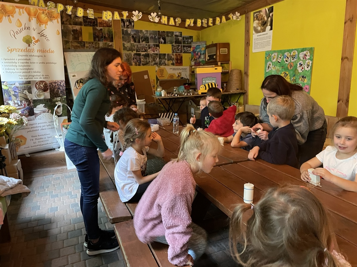 Posłuchać niezwykłych ciekawostek o świecie pszczół, spróbować prawdziwego miodu, zrobić wyjątkowe świece woskowe - to mogli zrobić mali badacze świata z oddziału przedszkolnego SP Jarosty. Wszystko za sprawą wycieczki do Pasieki w Lipce, której gospodynią jest przesympatyczna Pani Marzena Serafińska.