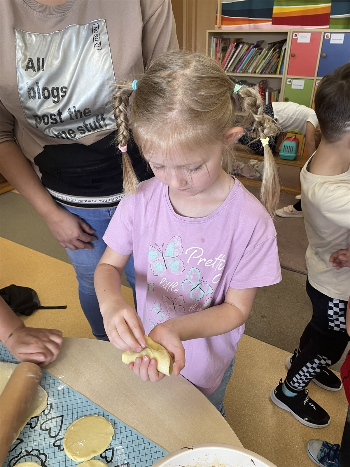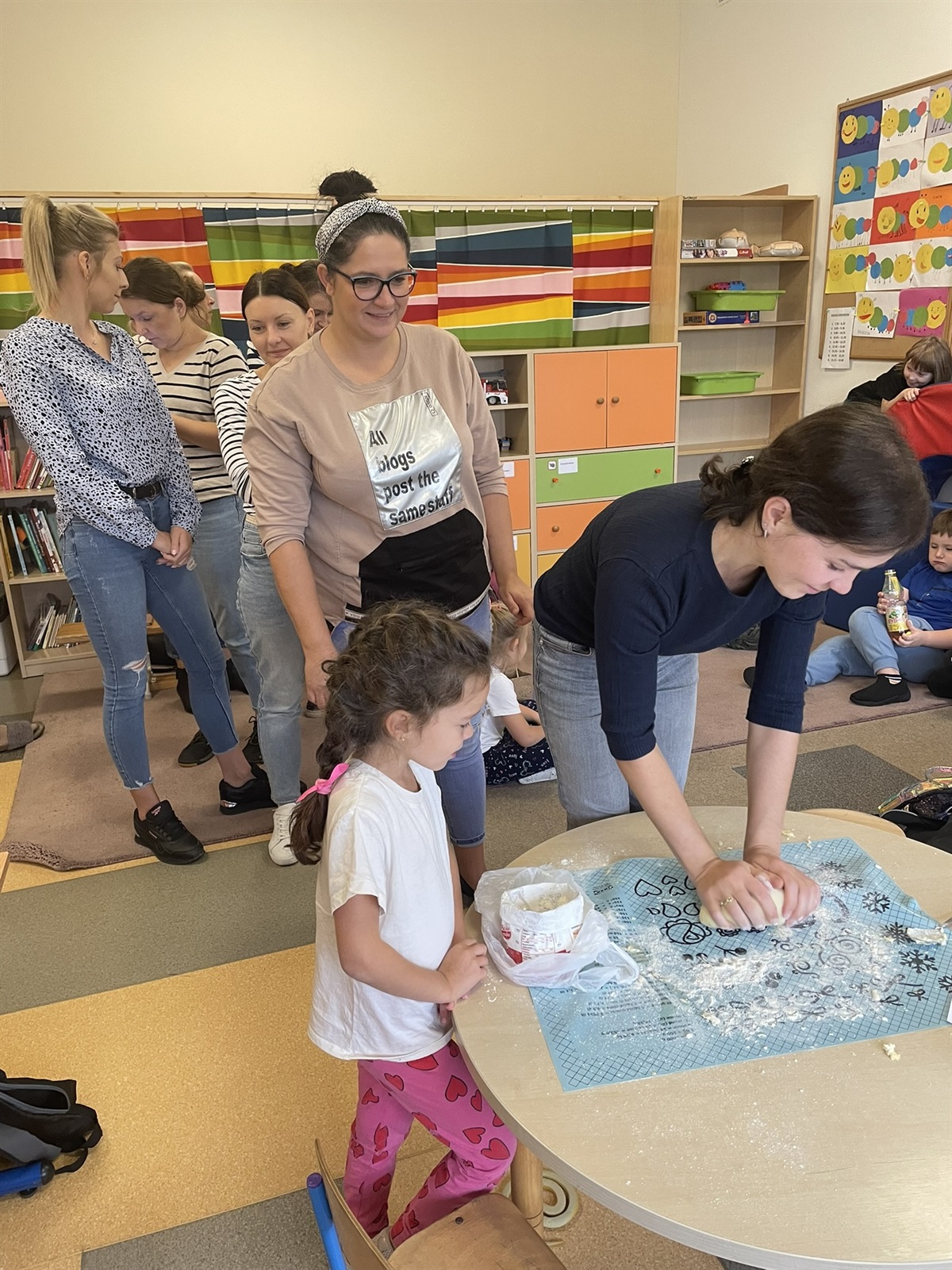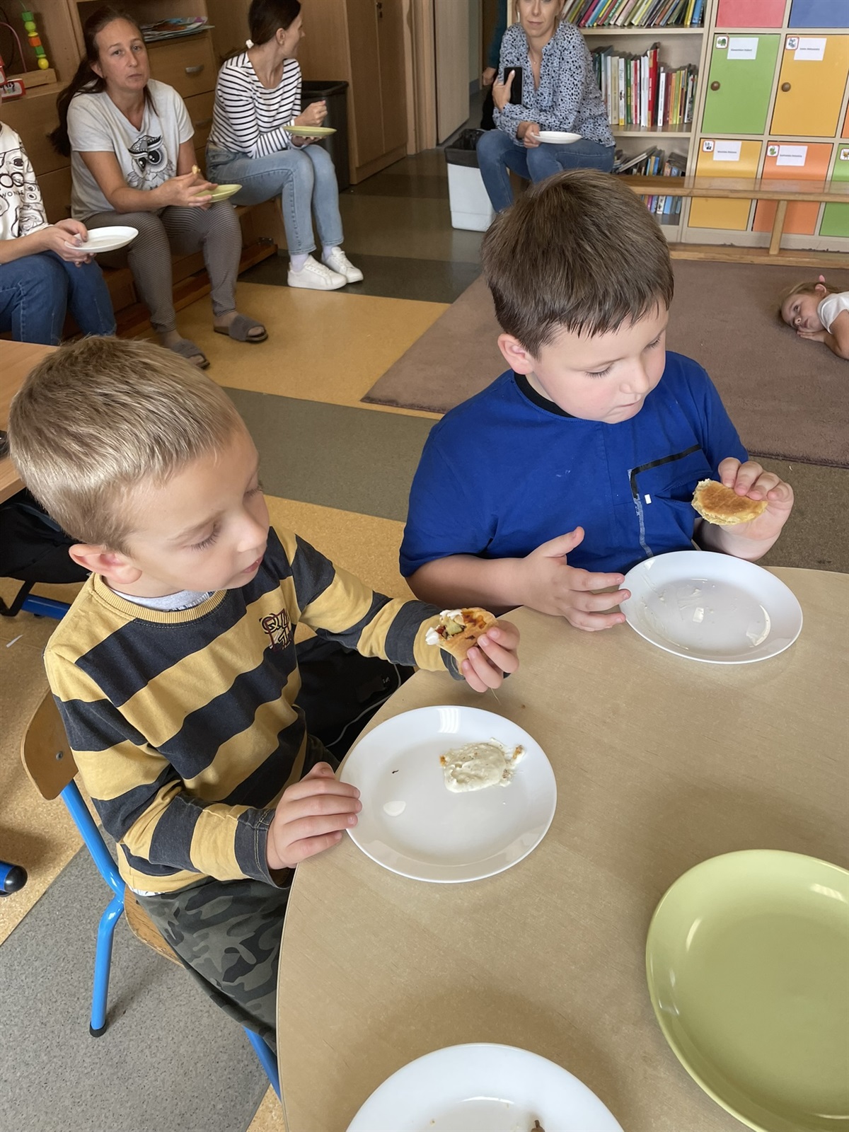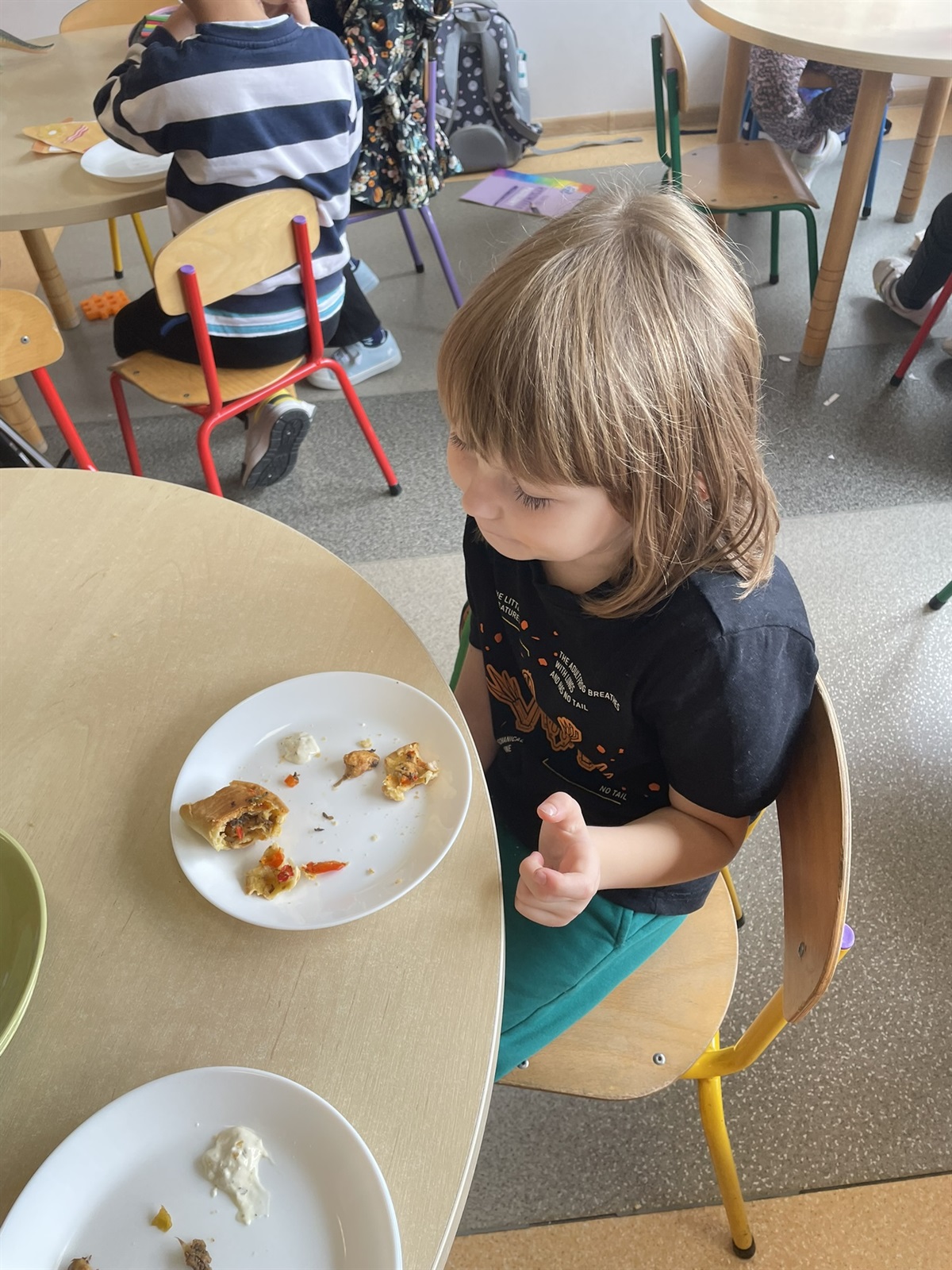 W poniedziałkowy poranek 7 października 2024 r. w oddziale przedszkolnym odbyły się kulinarne zmagania przedszkolaków oraz ich rodziców. Dziecięce rączki przy pomocy rodziców przygotowały składniki, a później gniotły, wałkowały, ubijały ciasto, które na godzinę powędrowało do lodówki. Następnie mali kucharze stworzyli farsz. Gdy ciasto już było gotowe wszyscy mali kucharze zakasali rękawy i zaczęli lepić włoskie mini calzone. Dzięki czemu usprawniliśmy chwyt szczypcowy, rozwój manualny, a także poznaliśmy miary matematyczne dotyczące ilości dodawanych składników. Później ze smakiem zajadaliśmy się wraz z rodzicami przepysznymi pierożkami calzone z dodatkiem sosu czosnkowego.