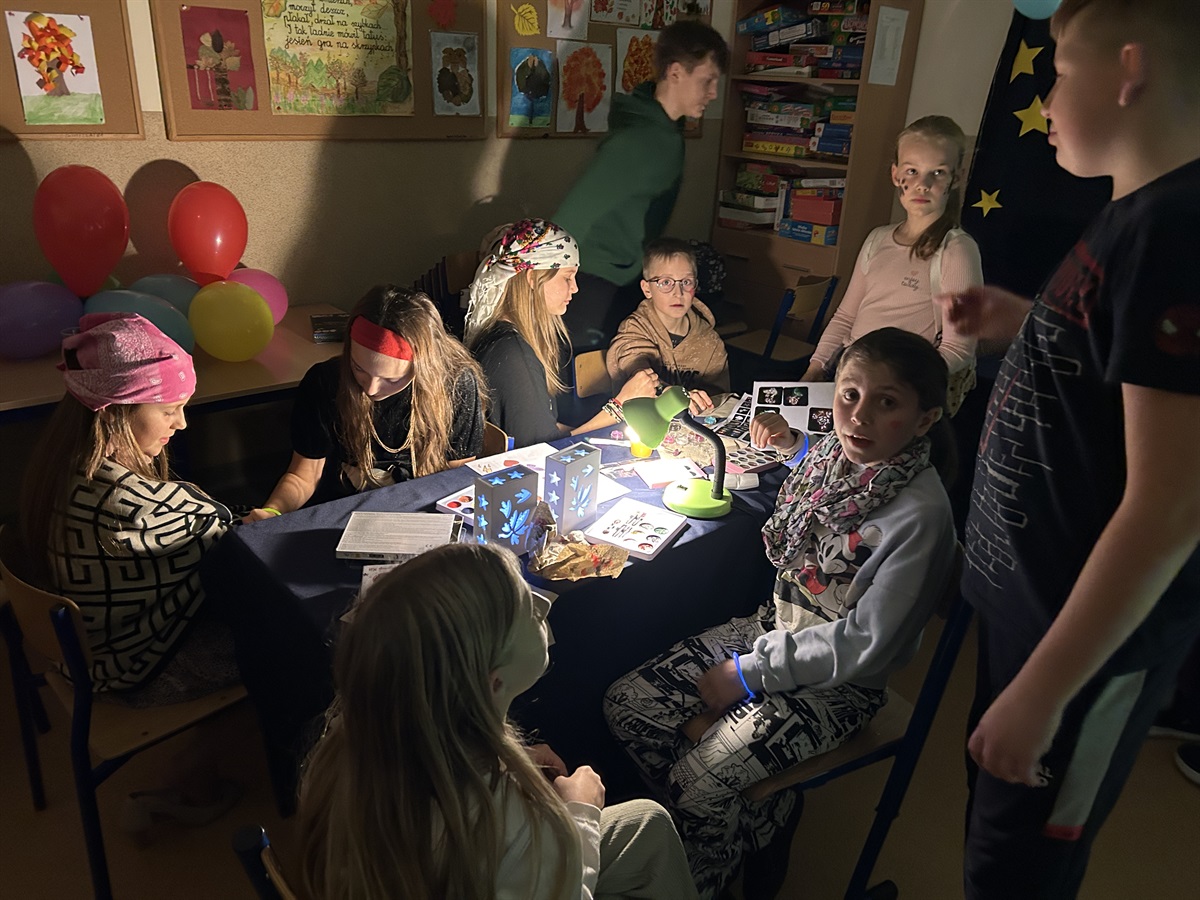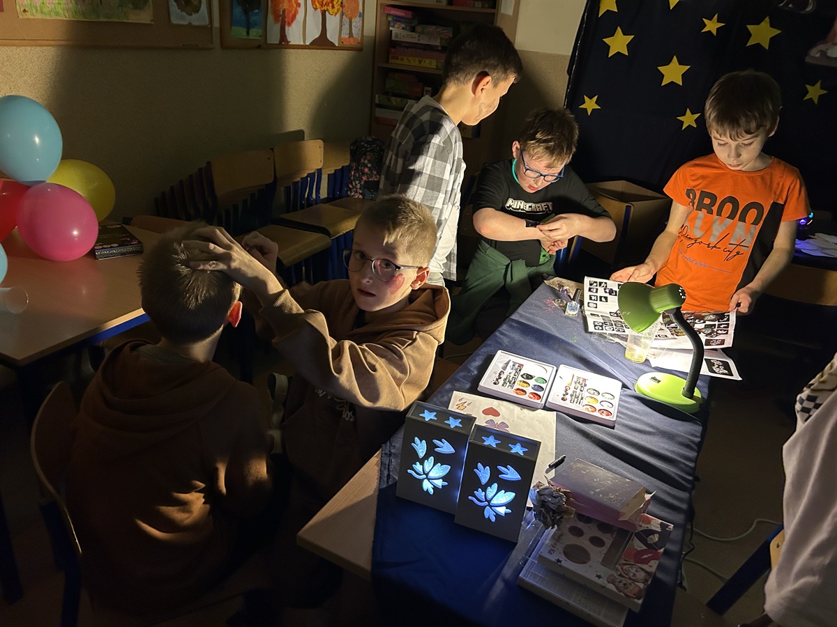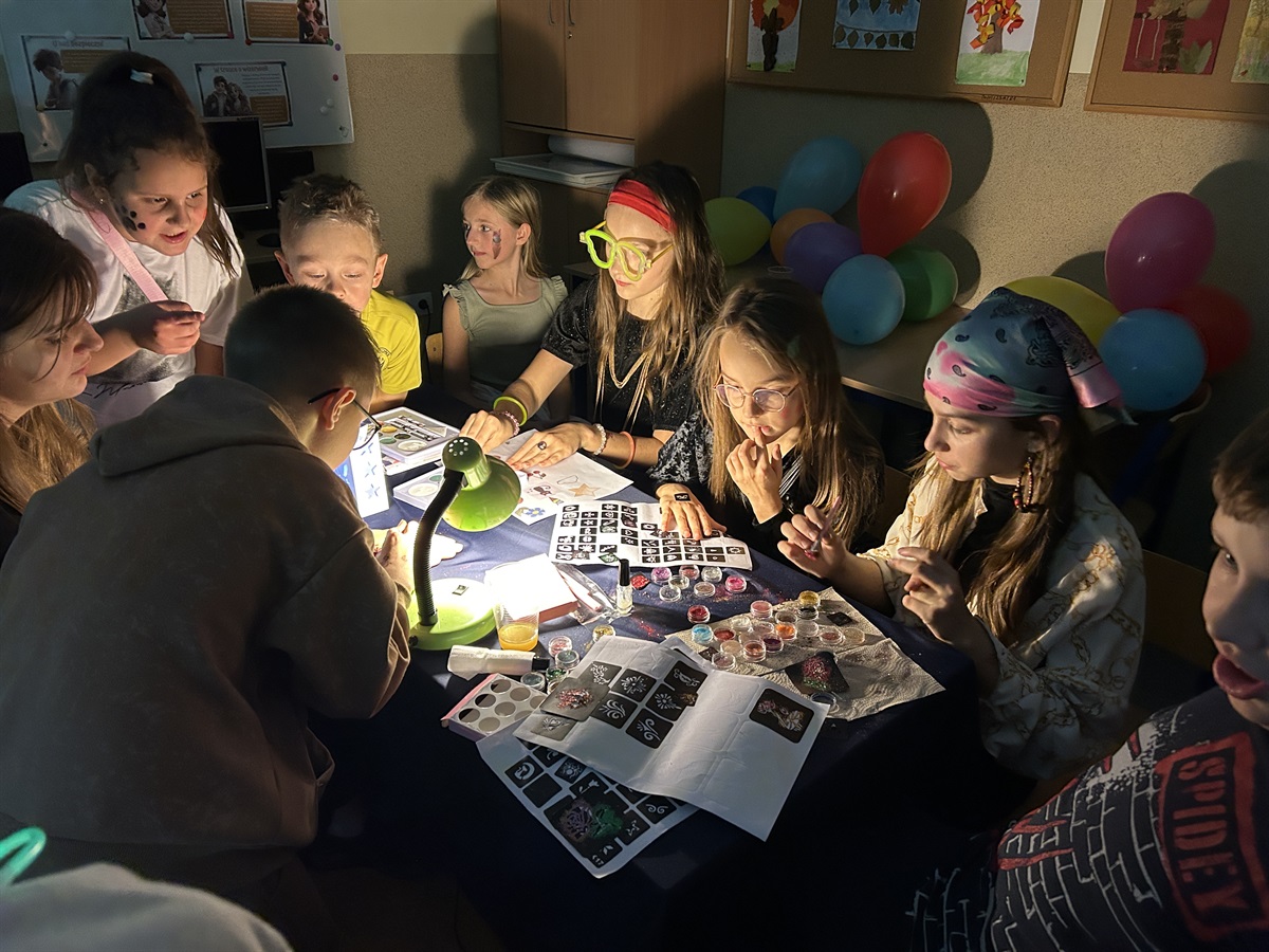 W dniu 21 listopada 2025 r. w naszej szkole uczniowie klasy VI brali udział w innowacji pedagogicznej pn. „Noc z kulturą”. Celem spotkania była nauka języka angielskiego  w atmosferze, w której uczeń czuje się swobodnie. Uczniowie wykonywali prace plastyczne, które później opisywali, tańczyli w rytm wybranych piosenek anglojęzycznych i je śpiewali. Dla wszystkich uczestników rodzice kupili pizzę.