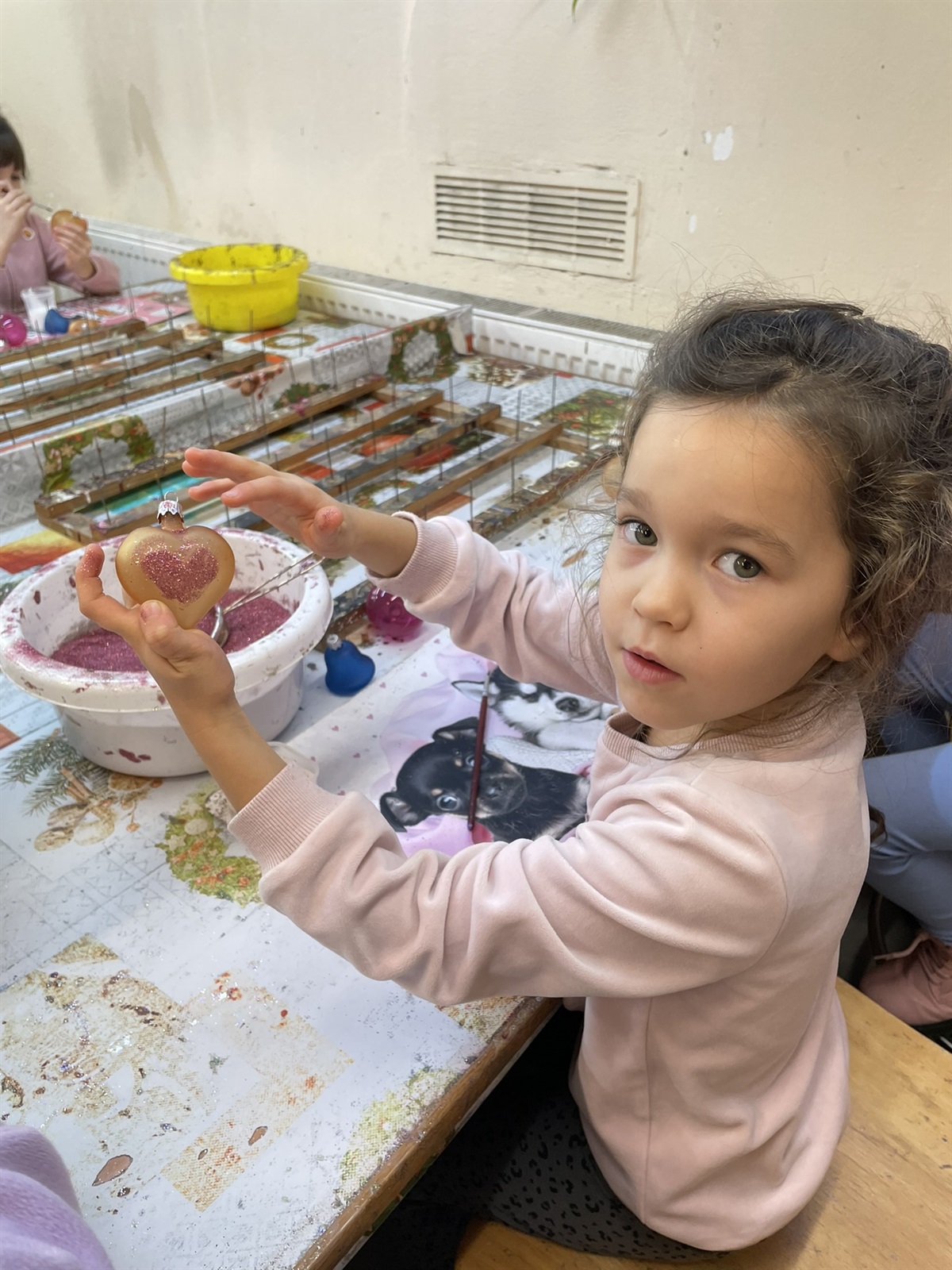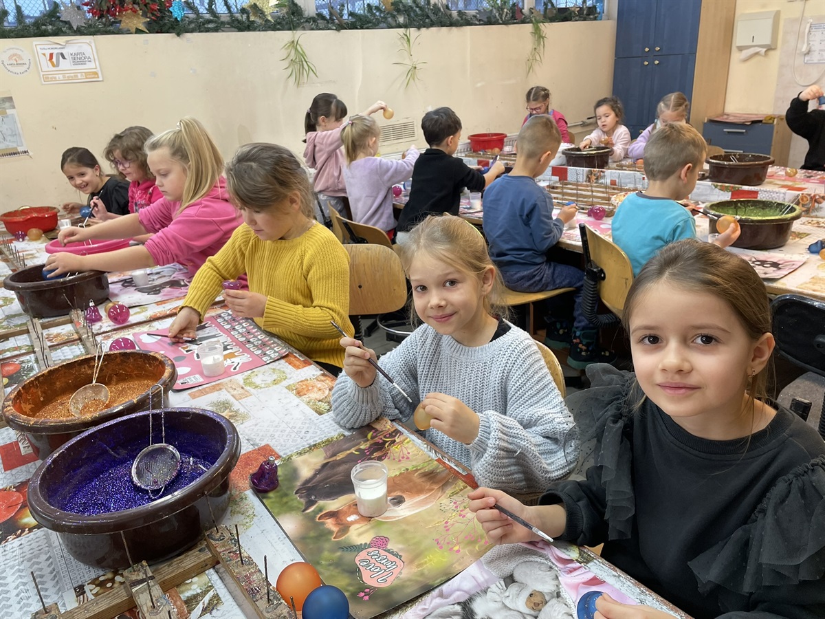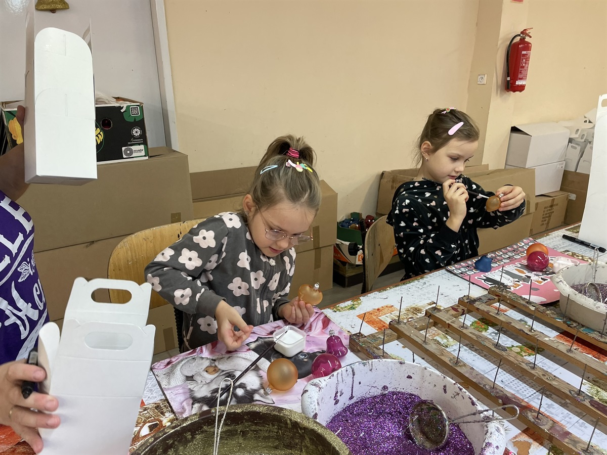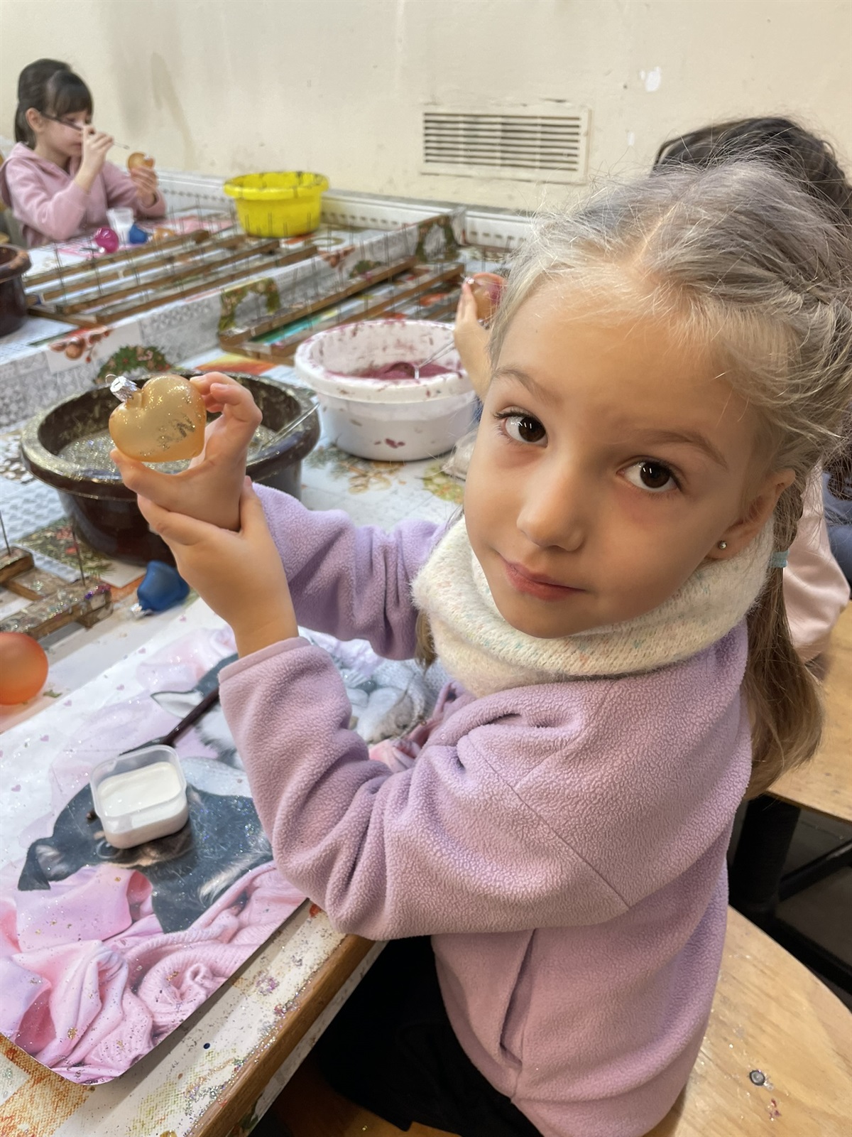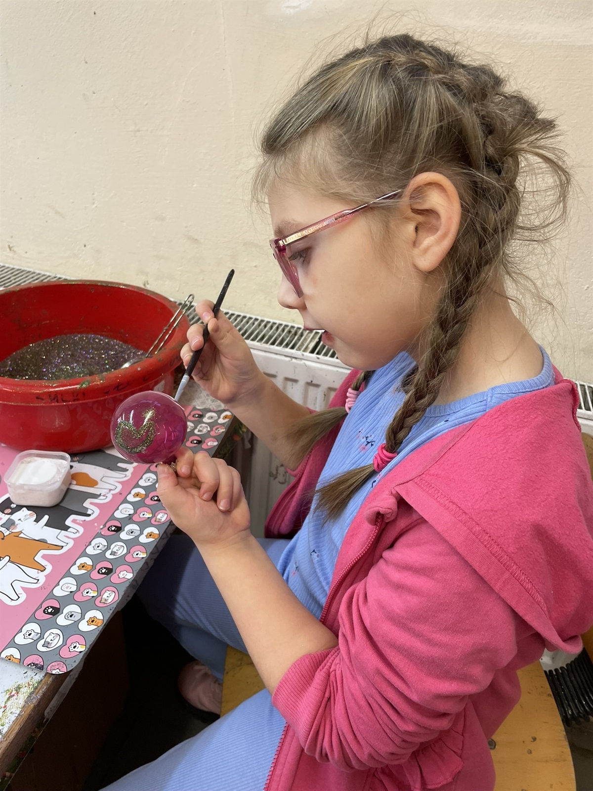 Natomiast w czwartek 28 listopada 2024 r. oddział przedszkolny wraz z klasą I wybrali się do najsłynniejszej w Polsce fabryki bombek - Szkło Dekor. Tam krok po kroku dzieci zostały wtajemniczone w proces powstawania szklanych ozdób. Bombki są najpierw wydmuchiwane i uzyskują odpowiednie formy, następnie trafiają do srebrzalni. Zanim wielka maszyna zacznie je potrząsać, strzykawką otrzymują do środka glukozę oraz azotan srebra, który nadaje bombką srebrnego koloru. Panie dekoratorki obdarzone imponującym talentem, wymalowują na świątecznych ozdobach przepiękne wzory. Podczas pobytu w fabryce bombek mogliśmy sami zamienić się w dekoratorów i ozdobić po cztery bombki, które potem z uśmiechem na ustach zabraliśmy do domów. Fabryka bombek była skarbnicą ogromnej wiedzy o zawodach