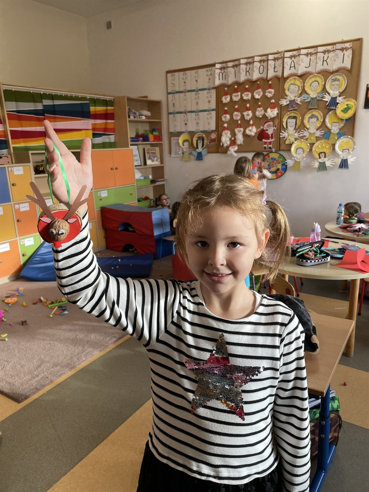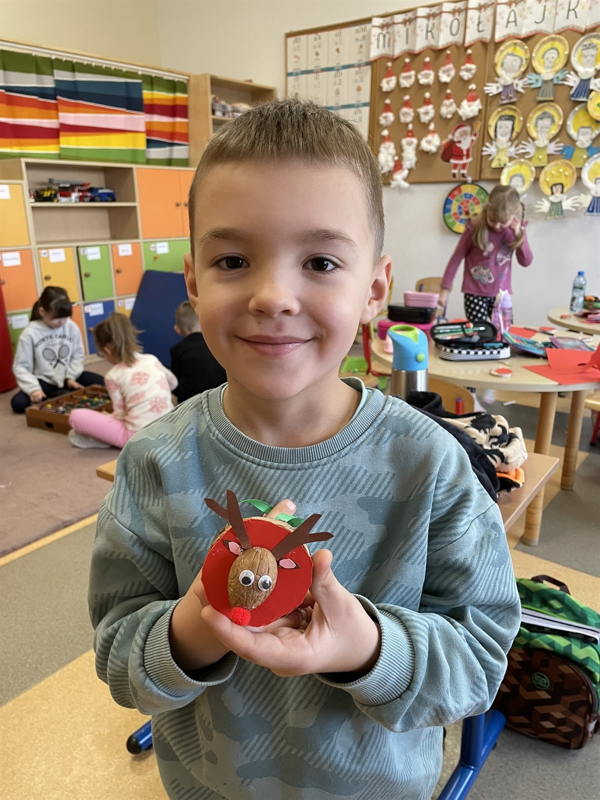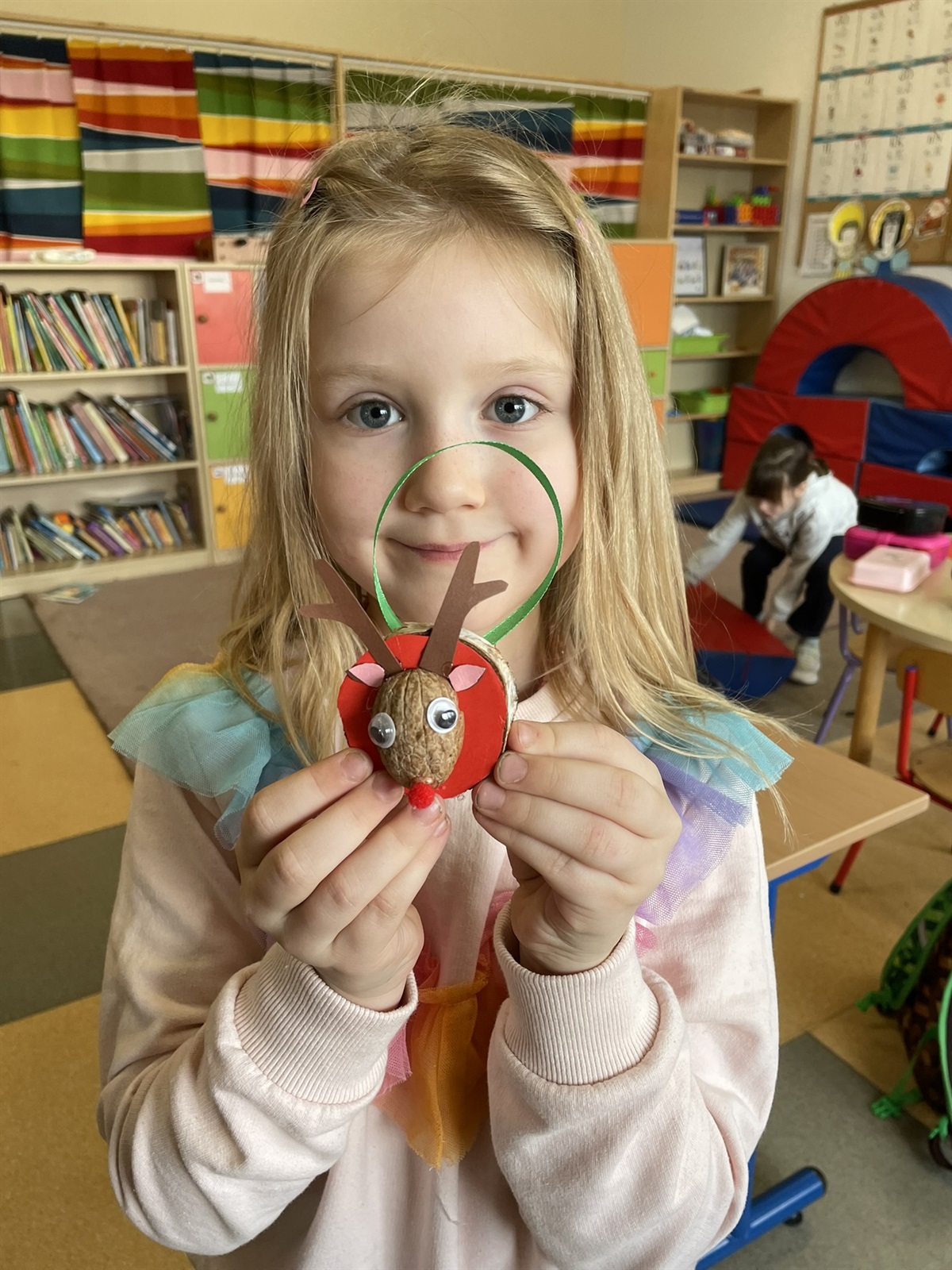 - wyczarowali świątecznego renifera jako kreatywną bombkę na choinkę. Przed rozpoczęciem pracy dzieci zapoznały się z zasadami bezpieczeństwa i BHP, zanim rozpoczęliśmy pracę z klejem na gorąco. Przedszkolaki podeszły do tego zadania z wielką werwą, zaangażowaniem. Tak przygotowane ozdoby udekorują ich domowe choinki. Z okazji Świąt Bożego Narodzenia wszystkie przedszkolaki życzą: