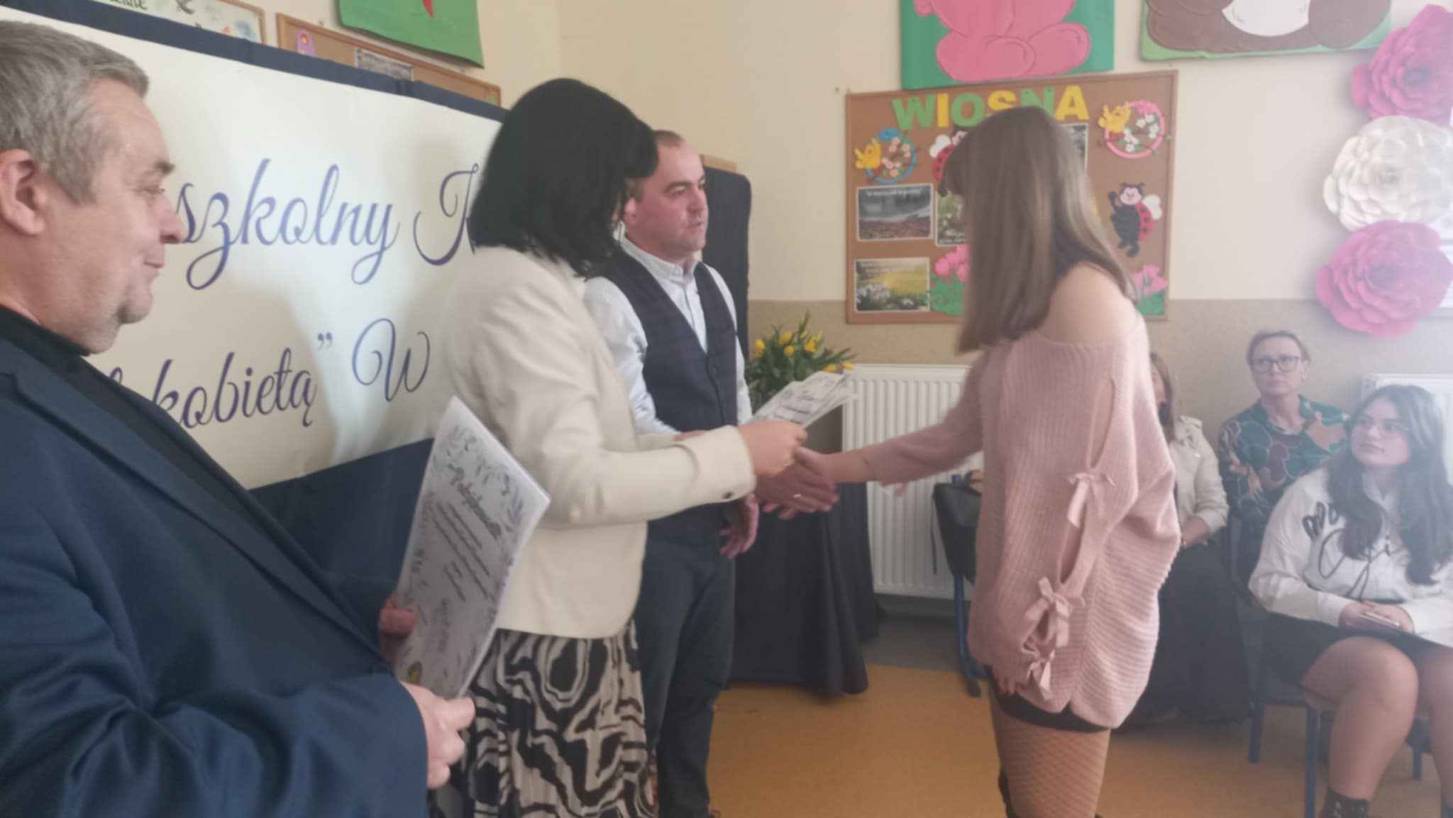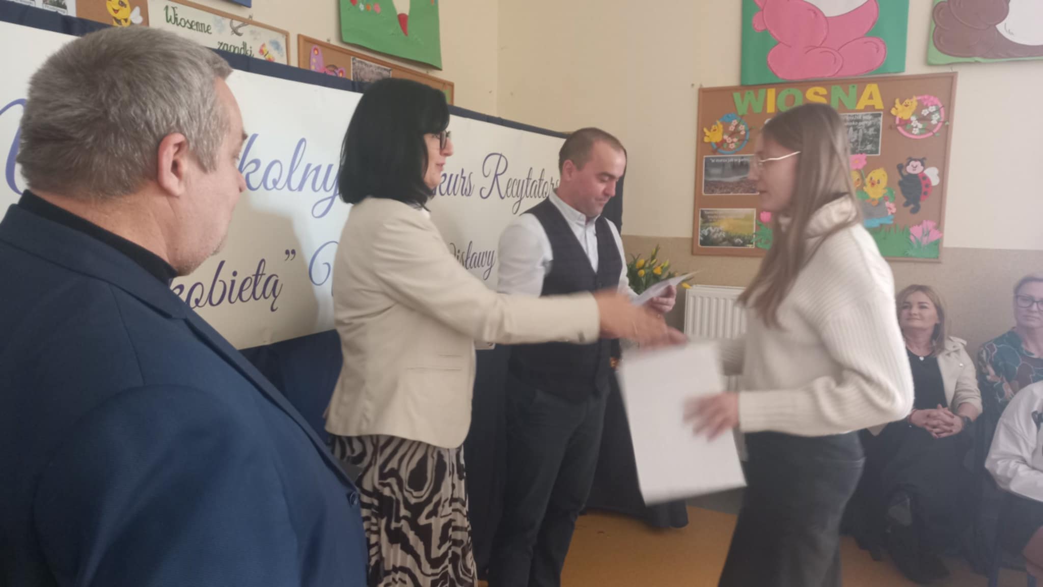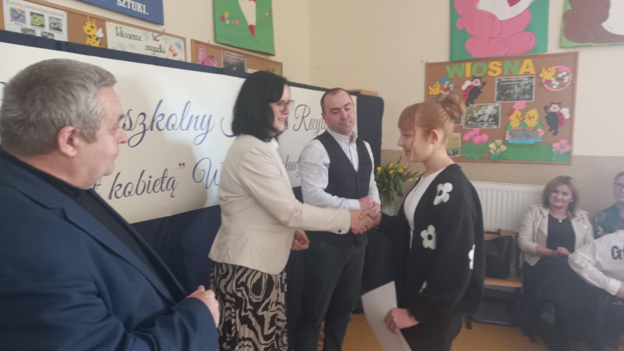 W tym roku w naszej szkole Dzień Kobiet obchodziliśmy z poezją na ustach. Aby uczcić to święto w wyjątkowy sposób, zorganizowany został konkurs recytatorski, w którym udział wzięły uczennice ze Szkoły Podstawowej w Brzozie, Szkoły Podstawowej w Jarostach, Szkoły Podstawowej w Moszczenicy oraz Szkoły Podstawowej w Srocku. Poziom przygotowania wszystkich uczestniczek był bardzo wysoki, więc jury w składzie: Pani Elżbieta Zielak – Kierownik Referatu Edukacji w Urzędzie Gminyw Moszczenicy, Pan Włodzimierz Kaźmierczak – Dyrektor Gminnego Ośrodka Kultury i Sportu w Moszczenicy oraz Pan Andrzej Nitek  - regionalista, autor książek o historii Moszczenicy, nie miało łatwego zadania. Ostatecznie przyznane zostały 3 wyróżnienia i 3 nagrody. Wyróżnione zostały: Natalia Kwaśniewska, Amelia Samborska i Wiktoria Ogrodnik ze Szkoły Podstawowej w Brzozie. Nagrody otrzymały: Zuzanna Krawczyk i Alicja Korytkowska ze Szkoły Podstawowej w Moszczenicy oraz Oliwia Stoś ze Szkoły Podstawowej w Srocku.  Wszystkie uczestniczki oraz opiekunowie otrzymali podziękowania za udział w konkursie. Organizatorzy dziękują również członkom jury za przyjęcie zaproszenia oraz Pani Dyrektor i Radzie Rodziców za wsparcie w organizacji wydarzenia.