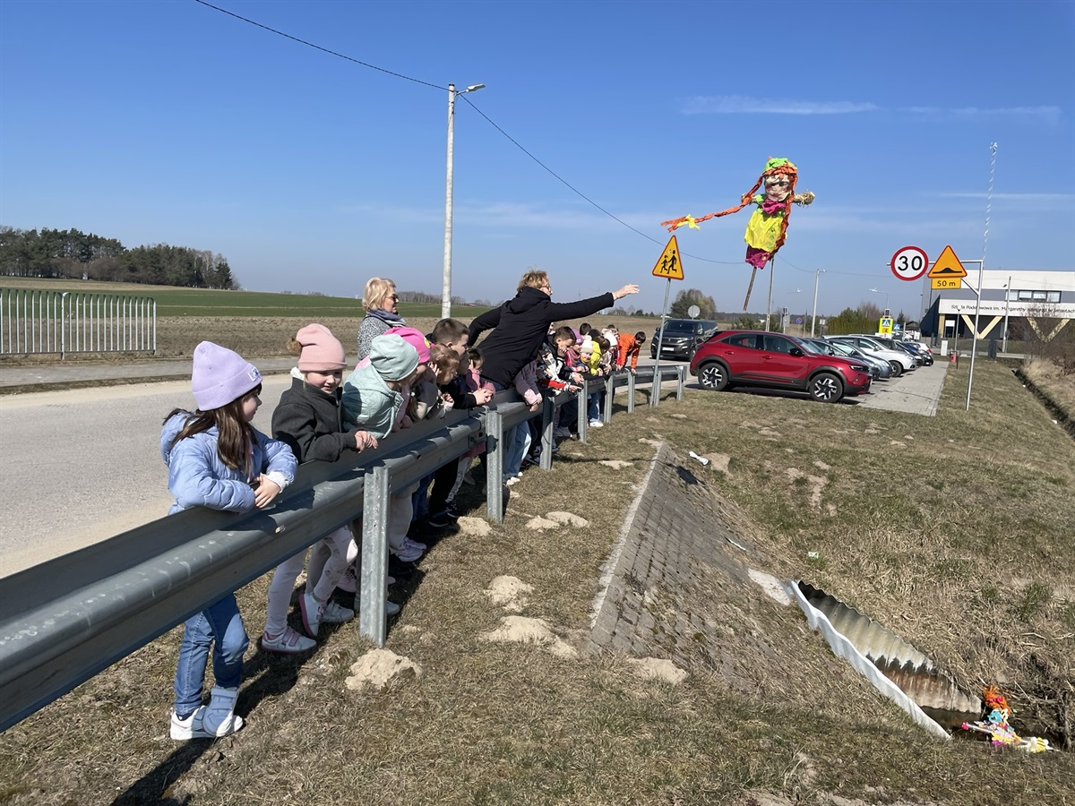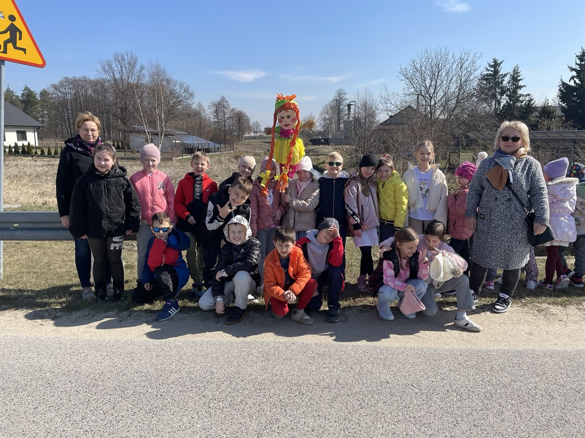Nasi uczniowie z wielkim zapałem i poczuciem ulgi przywitali wiosnę 21 marca 2025 roku. Pogoda dopisała, a więc tak jak tradycja ludowa nakazuje słomiana kukła lub ta nieco bardziej nowoczesna, stworzona z ekologicznych produktów utonęła w pobliskiej rzece. Oczywiście nie obyło się bez wiosennego zaklęcia wymawianego podczas wrzucania marzanny do rzeki, brzmiał on następująco: „Marzanno, Marzanno Ty piękna panno do wody Cię wrzucamy bo wiosny czekamy! Takim oto sposobem zapewniliśmy sobie wiosenny klimat.
