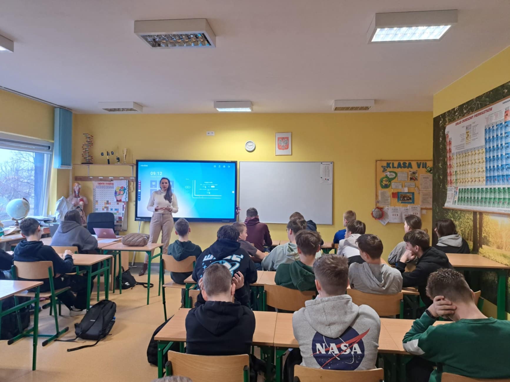 24 marca, z okazji Dnia Edukacji Prawnej, uczniowie klas VII i VIII mieli wyjątkową okazję uczestniczyć w spotkaniu z Panią Notariusz Agatą Teleman. Wydarzenie odbyło się w ramach inicjatywy Ministerstwa Sprawiedliwości, której celem jest przybliżenie młodzieży zagadnień prawnych i zwiększenie ich świadomości na temat funkcjonowania prawa w codziennym życiu. Podczas spotkania Pani Notariusz wyjaśniła uczniom, na czym polega jej zawód, jakie pełni obowiązki oraz w jakich sytuacjach można skorzystać z usług notariusza. Opowiedziała o znaczeniu dokumentów urzędowych, aktów notarialnych oraz o tym, jak ważne jest świadome podejmowanie decyzji prawnych. Uczniowie mieli możliwość zadawania pytań, a ich zainteresowanie budziły takie tematy jak dziedziczenie, umowy oraz ochrona prawna osób niepełnoletnich. Pani Notariusz chętnie dzieliła się swoją wiedzą i odpowiadała na pytania w przystępny sposób, dostosowany do wieku słuchaczy. Spotkanie było niezwykle wartościowe i pozwoliło młodzieży zrozumieć, jak prawo wpływa na różne aspekty ich życia. Była to także świetna okazja do rozmowy o odpowiedzialności prawnej oraz znaczeniu rzetelności i uczciwości w relacjach prawnych. Uczniowie opuścili spotkanie wzbogaceni o nową wiedzę i z większą świadomością dotyczącą roli prawa w społeczeństwie. Inicjatywy takie jak ta są doskonałym sposobem na kształtowanie świadomych i odpowiedzialnych obywateli.
