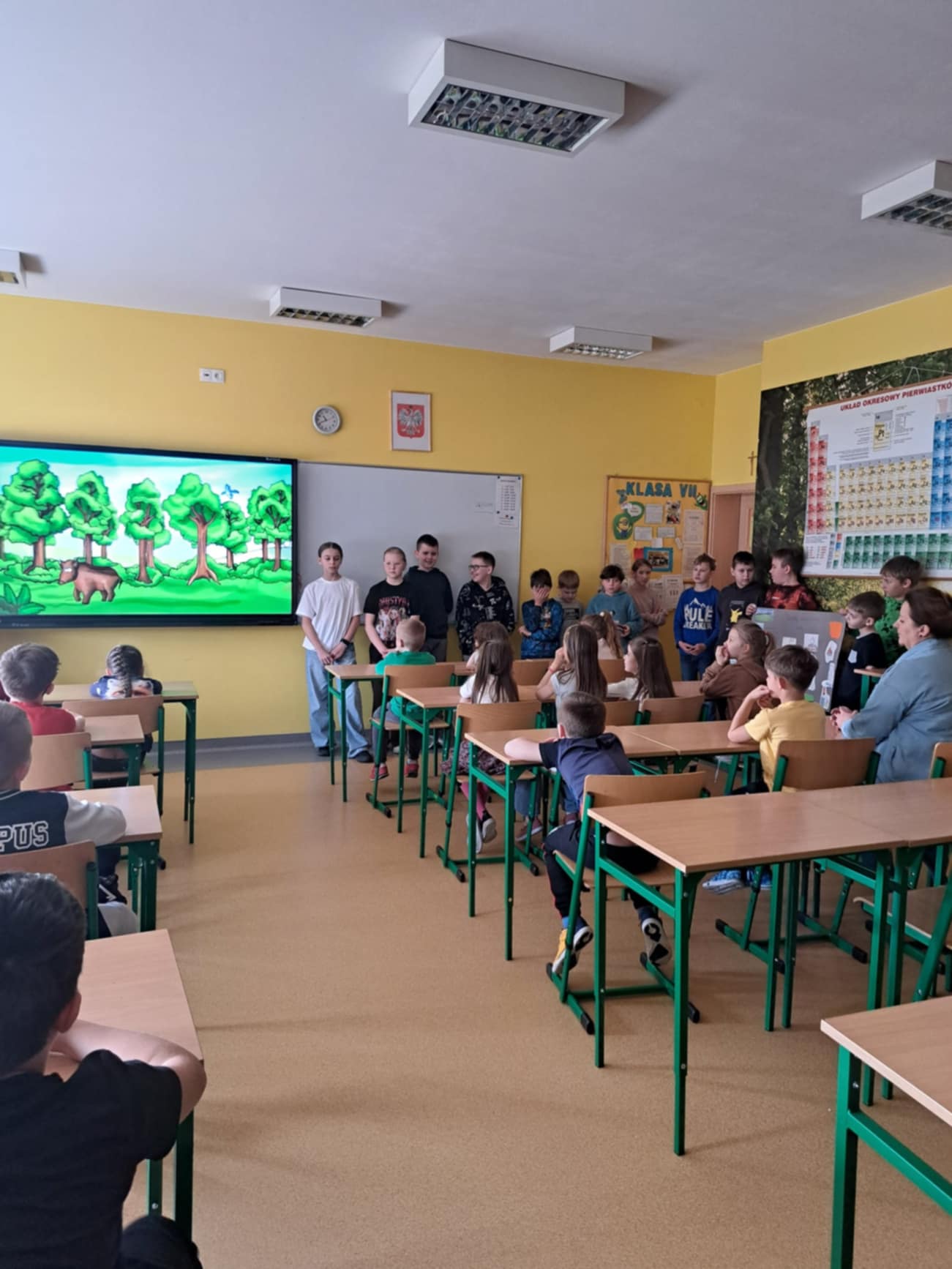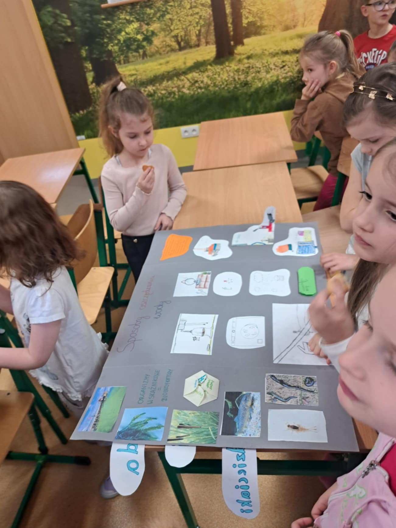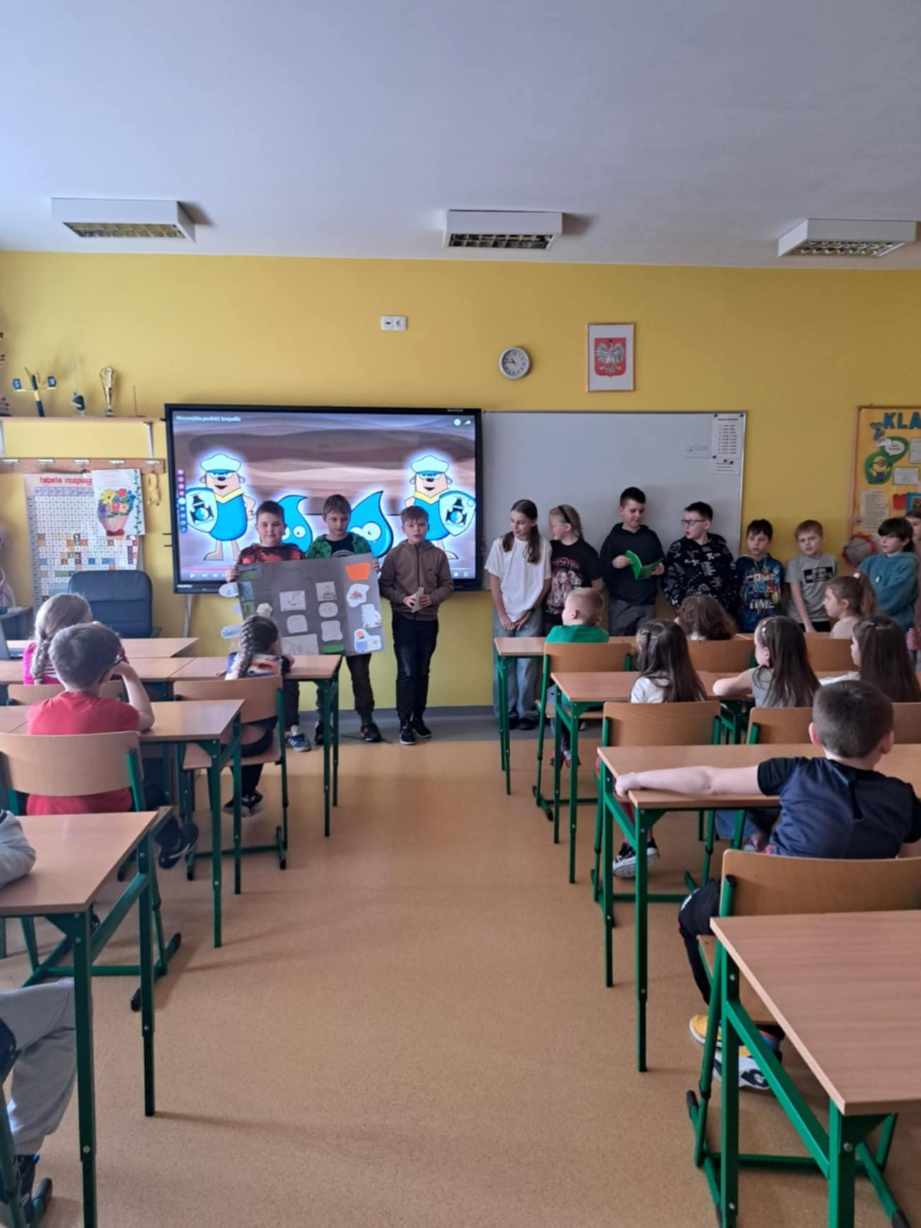 Uczniowie klasy IV, uczestniczący w zajęciach koła ekologicznego, przygotowali niezwykłą, edukacyjną lekcję dla swoich młodszych kolegów i koleżanek. Wydarzenie odbyło się w ramach realizowanego w szkole projektu "Woda i Super Dzieciaki". Młodzi edukatorzy z pasją opowiedzieli o ważnych zagadnieniach związanych z wodą – czym jest hydrologia, jakie są przyczyny i skutki zanieczyszczeń wód, jak działa oczyszczanie wody oraz dlaczego i jak warto ją oszczędzać. Prezentacje i wspólne rozmowy wzbudziły duże zainteresowanie wśród uczestników. Była to cenna lekcja ekologicznej odpowiedzialności i dowód na to, że dzieci naprawdę mogą zmieniać świat na lepsze!