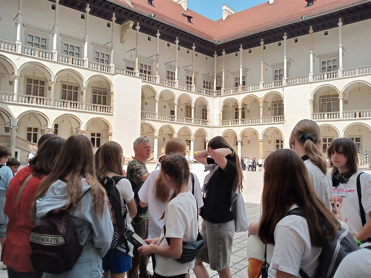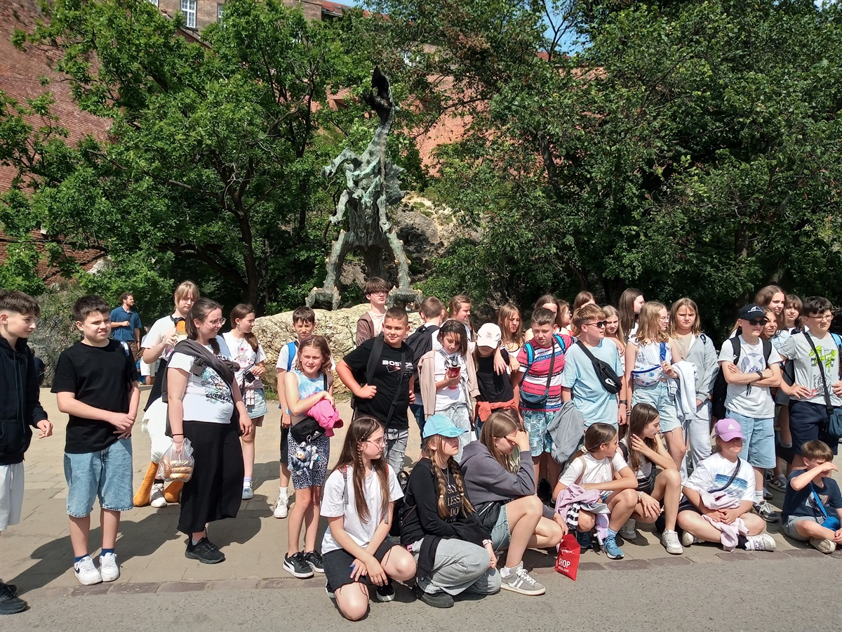Drugiego dnia wędrowaliśmy Drogą Królewską przez Kraków. Zwiedziliśmy Barbakan, Kościół Mariacki, gdzie wysłuchaliśmy słynnego hejnału z wieży, oraz Sukiennice. Widzieliśmy również Bramę Floriańską i okno papieskie, z którego  Jan Paweł II przemawiał do wiernych. Następnie udaliśmy się na Wzgórze Wawelskie. Tam zobaczyliśmy Dziedziniec Zamkowy, zwiedziliśmy Katedrę Wawelską, a na koniec spotkaliśmy się ze smokiem – odwiedziliśmy Smoczą Jamę i stanęliśmy oko w oko z ziejącym ogniem potworem.