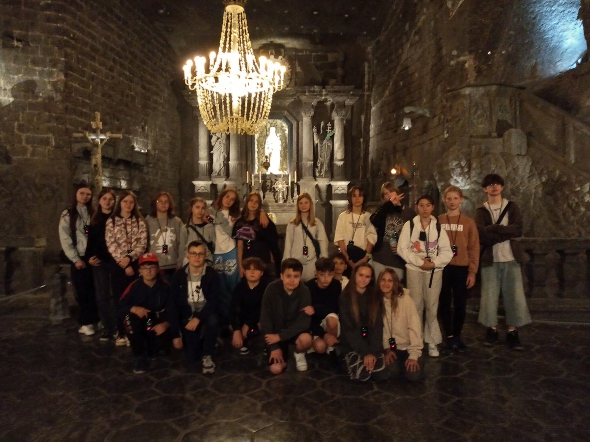 w Krakowie, gdzie uczniowie mogli samodzielnie eksperymentować i poznawać prawa fizyki w niezwykle przystępny i angażujący sposób. Następnie udaliśmy się do Wieliczki. Tam zrelaksowaliśmy się w tężni solankowej, a później zeszliśmy pod ziemię, by zwiedzić słynną Kopalnię Soli  – jedno z najcenniejszych