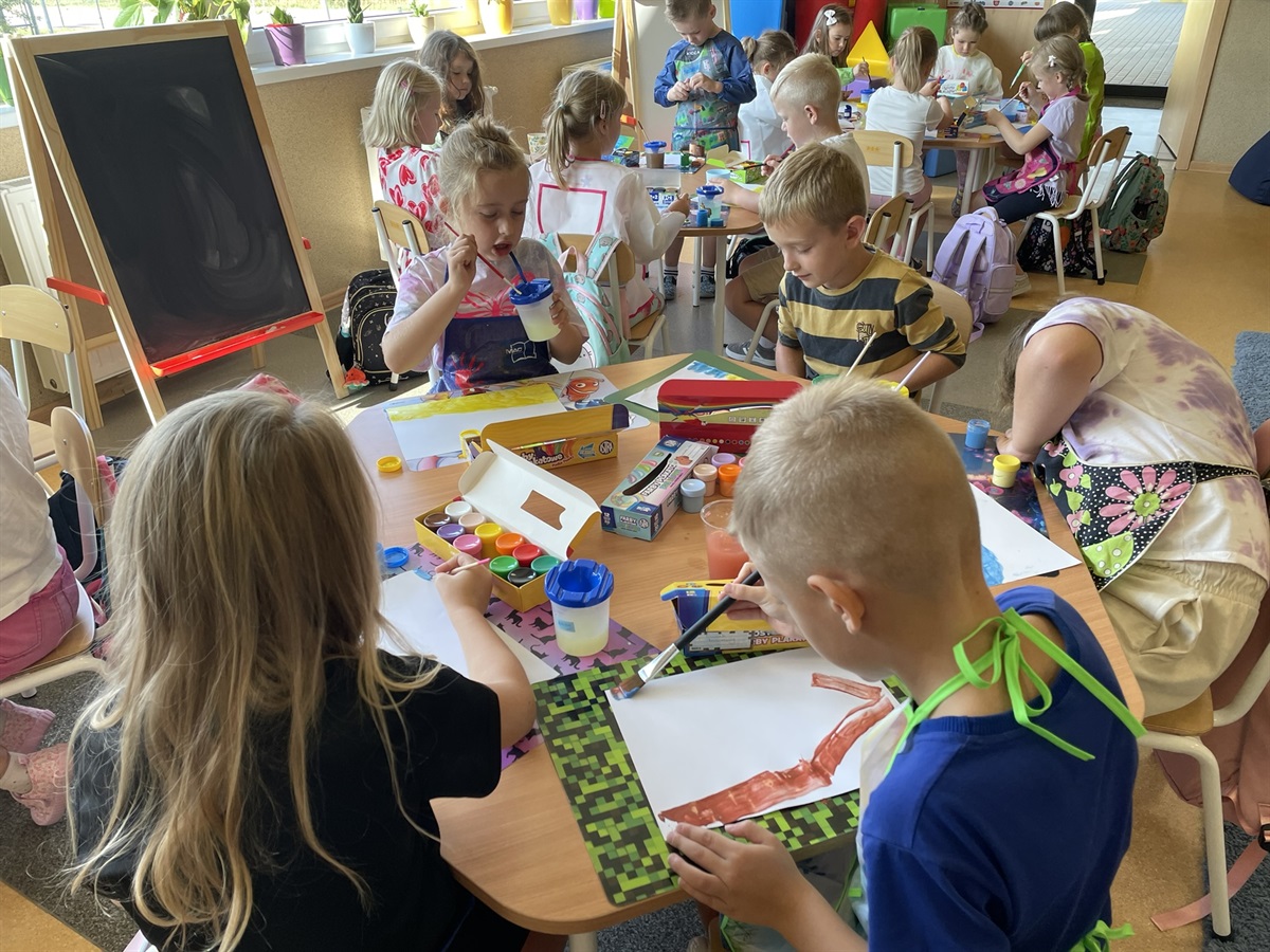 Podczas zajęć najmłodsi uczniowie SP Jarosty pobudzali swoją wyobraźnię wizualną oraz ćwiczyli rozwój ręki przy pomocy zabaw sensorycznych. Magiczny żel do tworzenia wodnych skrzatów pobił rekordy popularności. Przedszkolaki mogły w kreatywny sposób pobawić się w wodzie, pobudzić zmysł dotyku, a także utrwalić kolory - wszystko za sprawą wodnych skrzatów, które własnoręcznie stworzyły i zabrały do domów. W następnych dniach nie obyło się bez przelewania na papier swoich wspomnień z wakacji za sprawą uwielbianych przez dzieci farb. Zaś cały inspirujący tydzień zakończyliśmy rozpoznawaniem wybranych liter i cyfr oraz beztroskim dokazywaniem na odnowionym placu zabaw! Przypominamy to dopiero początek edukacyjnych wyzwań, a będzie się działo!