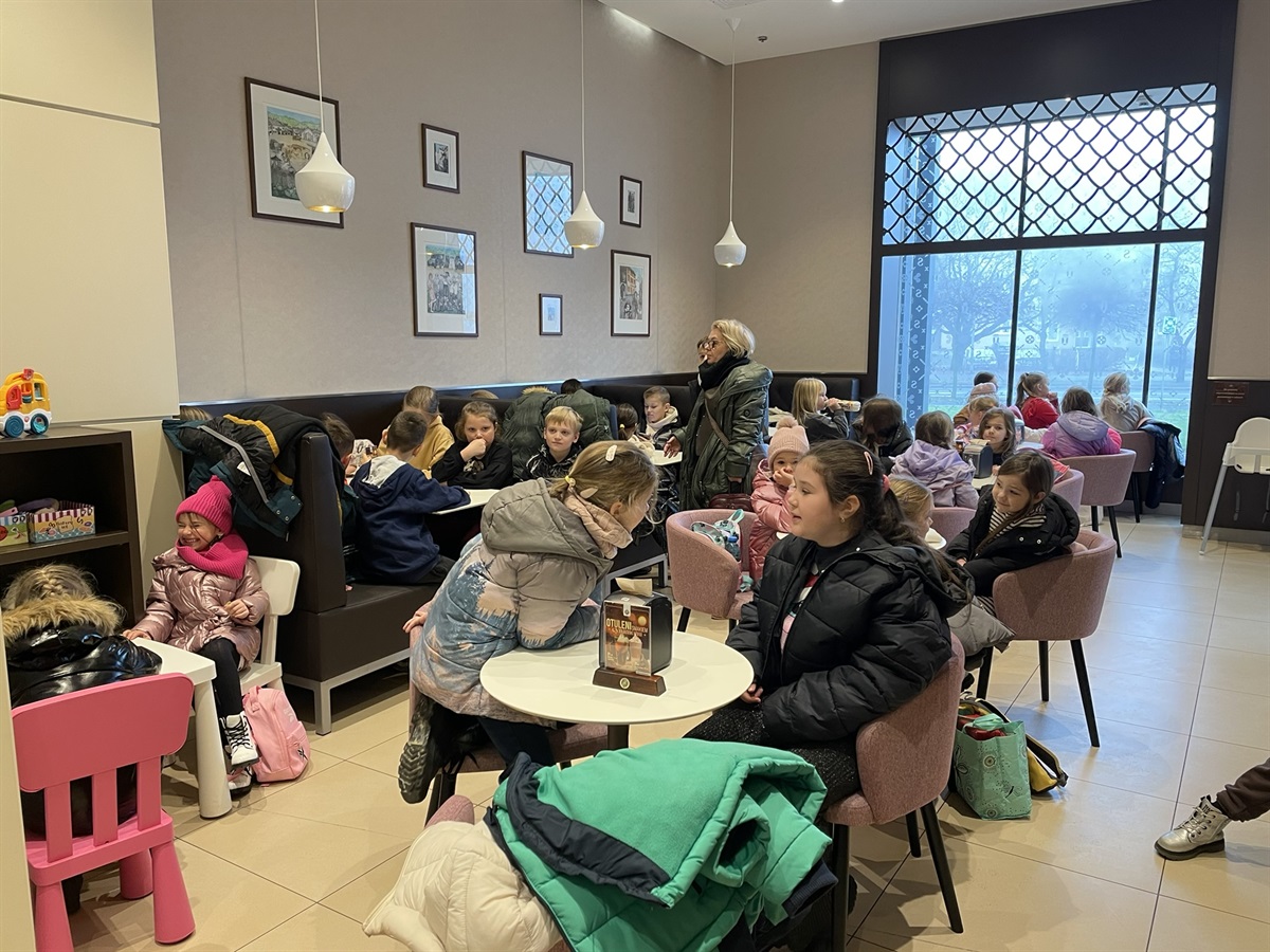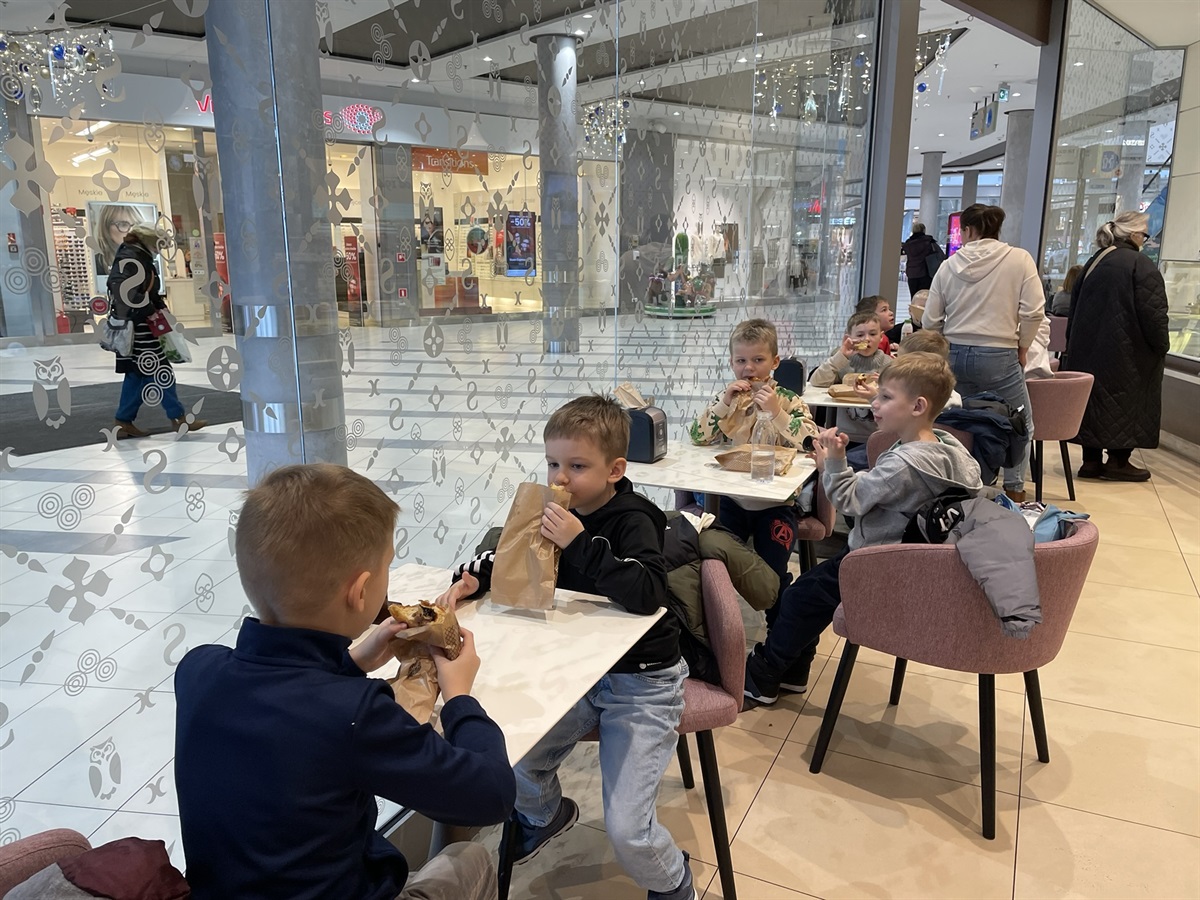 Ma długą, białą brodę, czerwone, modne ubranie, a dodatkowo na głowie nosi dużą czerwoną czapkę z białym pomponem. Jednak to nie jest tak ważne, ważne jest to co nosi na plecach - ogromny wór z prezentami dla dzieci! Jednym z wielu bohaterów bajek z cyklu „Magiczna gwiazdka zwierzaków” był właśnie on - Mikołaj. Na przepięknie animowany cykl pięciu bajek w czwartkowy poranek (04.12.2025 roku) wybrał się oddział przedszkolny z oddziałem trzecim.    Seans w kinie na Mikołaja to wyborny pomysł, a do tego jeszcze coś słodkie w jednej z najpopularniejszych ciastkarni to już strzał w dziesiątkę! W taki filmowo – słodki sposób swoje Mikołajki spędzały przedszkolaki i trzecioklasiści wraz z opiekunami. Takie Mikołajki to nie lada gratka, a jakie pozostają piękne wspomnienia - to możecie tylko zobaczyć sami na zamieszczonej fotorelacji z tego mikołajkowego wypadu.  Organizatorem wycieczki była Pani Elżbieta Ogrodniczak-Kozłowska - wychowawczyni oddziału trzeciego oraz Pani Urszula Pielużek. Opiekę nad oddziałem przedszkolnym sprawowały Panie Ewa Wiśniewska - wychowawczyni oddziału przedszkolnego i Pani Małgorzata Dziubecka.