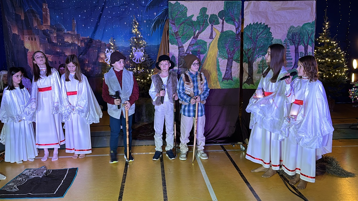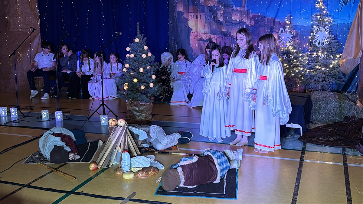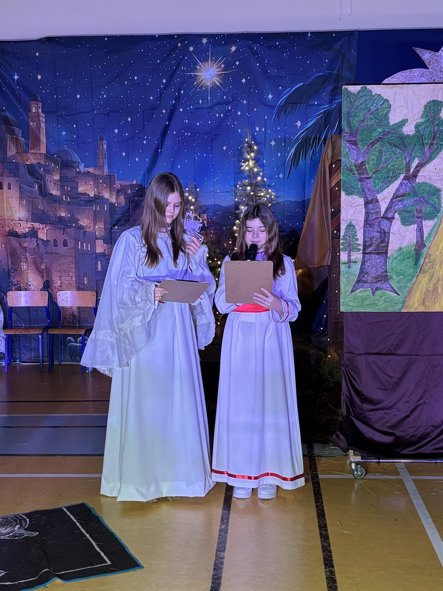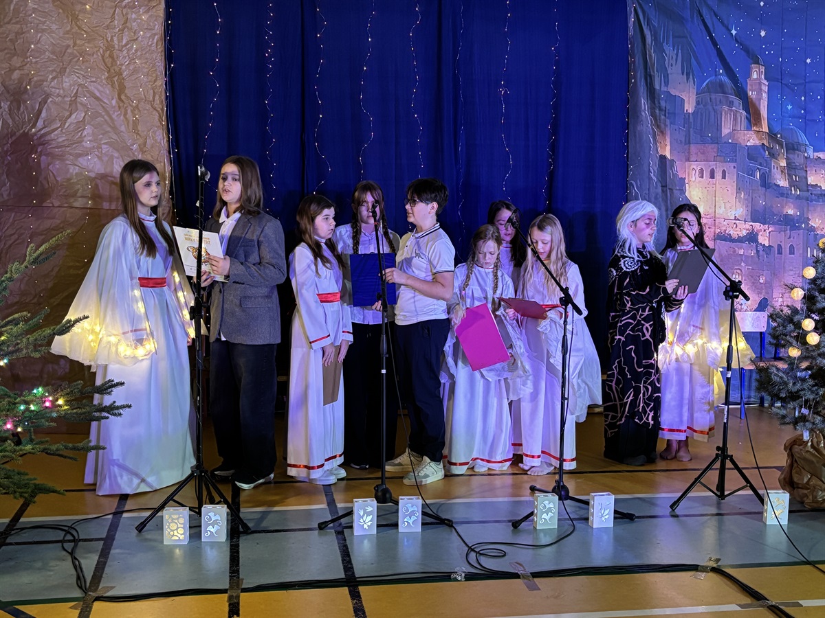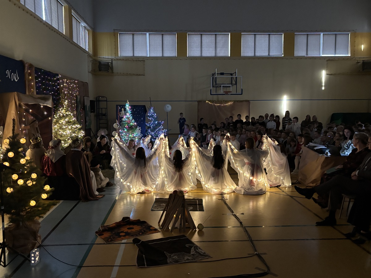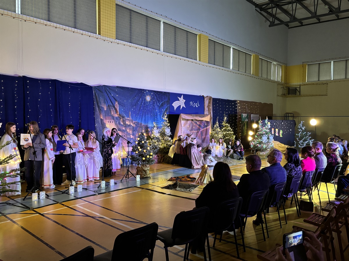 17 grudnia w naszej szkole odbyły się jasełka bożonarodzeniowe. W niesamowicie magicznej scenerii zebrali się uczniowie, nauczyciele, pracownicy szkoły i rodzice.  Nasi artyści  słowem, piosenką i tańcem przypomnieli historię narodzin Jezusa, czyli opowieść   o miłości, pokoju i dobru, która od wieków łączy ludzi na całym świecie. Wspólnie ze społecznością szkoły te radosne chwile celebrowali zaproszeni goście: