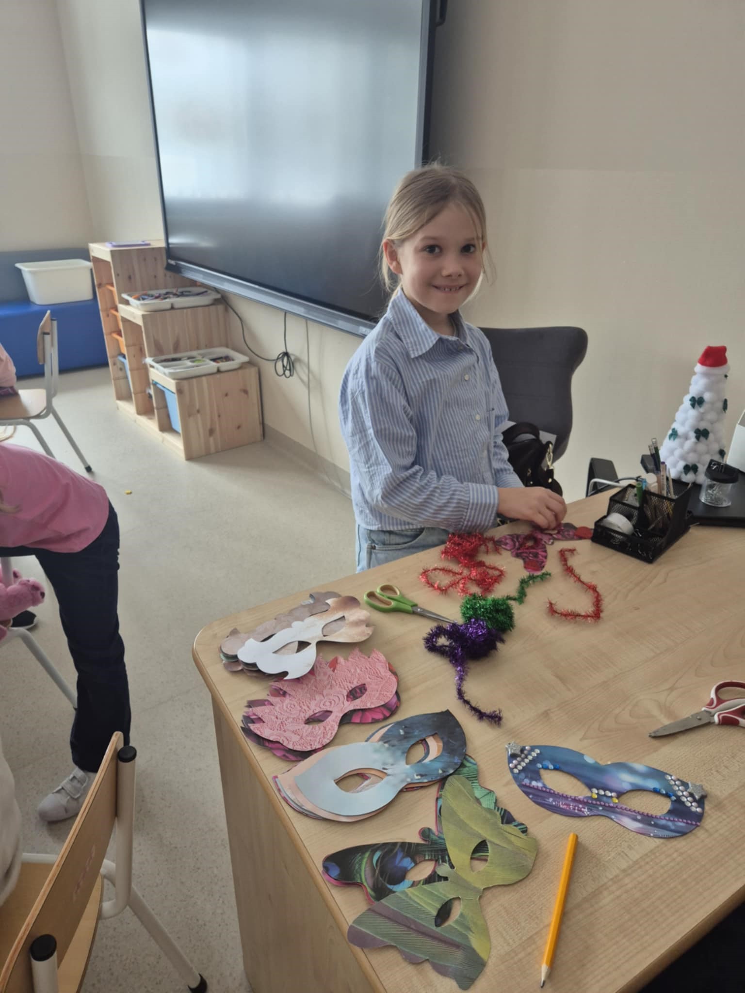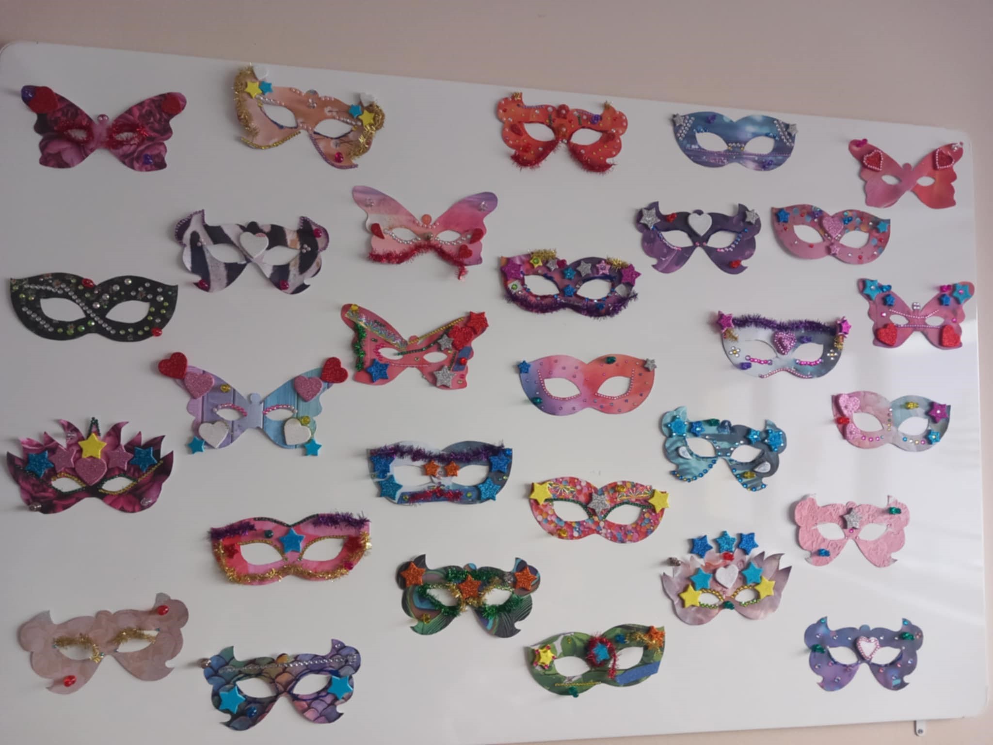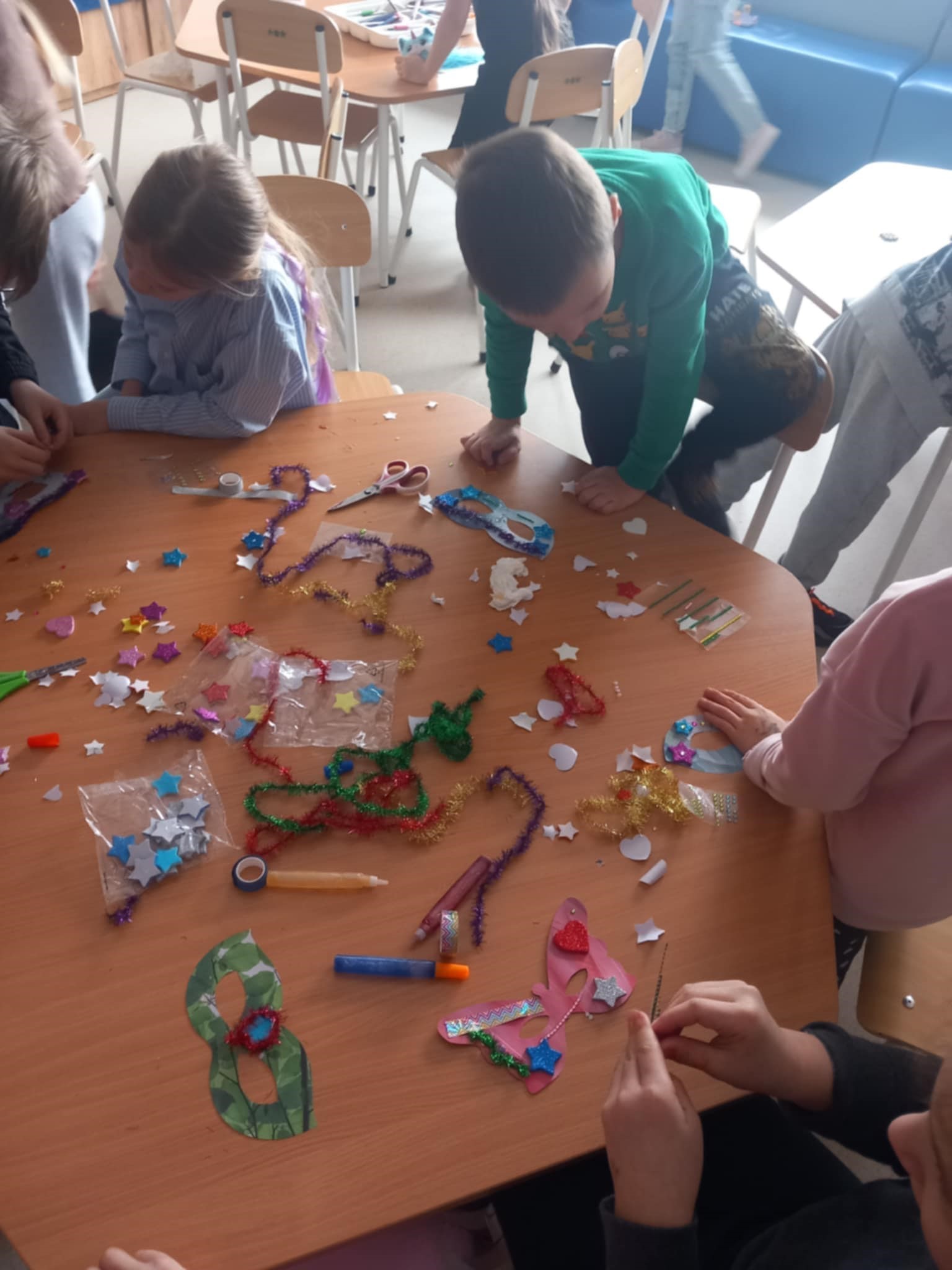 Podczas zajęć świetlicowych rozmawialiśmy o karnawale, czyli czasie zabaw, balów a przede wszystkim wielobarwnych strojów. W czasie zajęć świetlicowych, uczniowie zapoznali się z karnawałowymi zwyczajami, jakie panują w Polsce i na świecie. W ramach zajęć plastyczno-technicznych wychowankowie świetlicy wykonywali maski karnawałowe. W trakcie wykonywania masek dzieci rozwijały swoje umiejętności plastyczno- manualne. Do ich wykonania używali kolorowego papieru, kredek a także bibuły, brokatów, cekinów oraz błyszczących ozdób i wielobarwnych piórek. Dzieci samodzielnie ozdabiały maski według własnych pomysłów, wykazując się dużą pomysłowością i zaangażowaniem. W trakcie zajęć doskonaliły sprawność manualną oraz umiejętność estetycznego wykańczania pracy. Tworzenie masek sprawiło uczniom mnóstwo radości. Powstały piękne dzieła sztuki. Zapraszamy do obejrzenia fotorelacji.