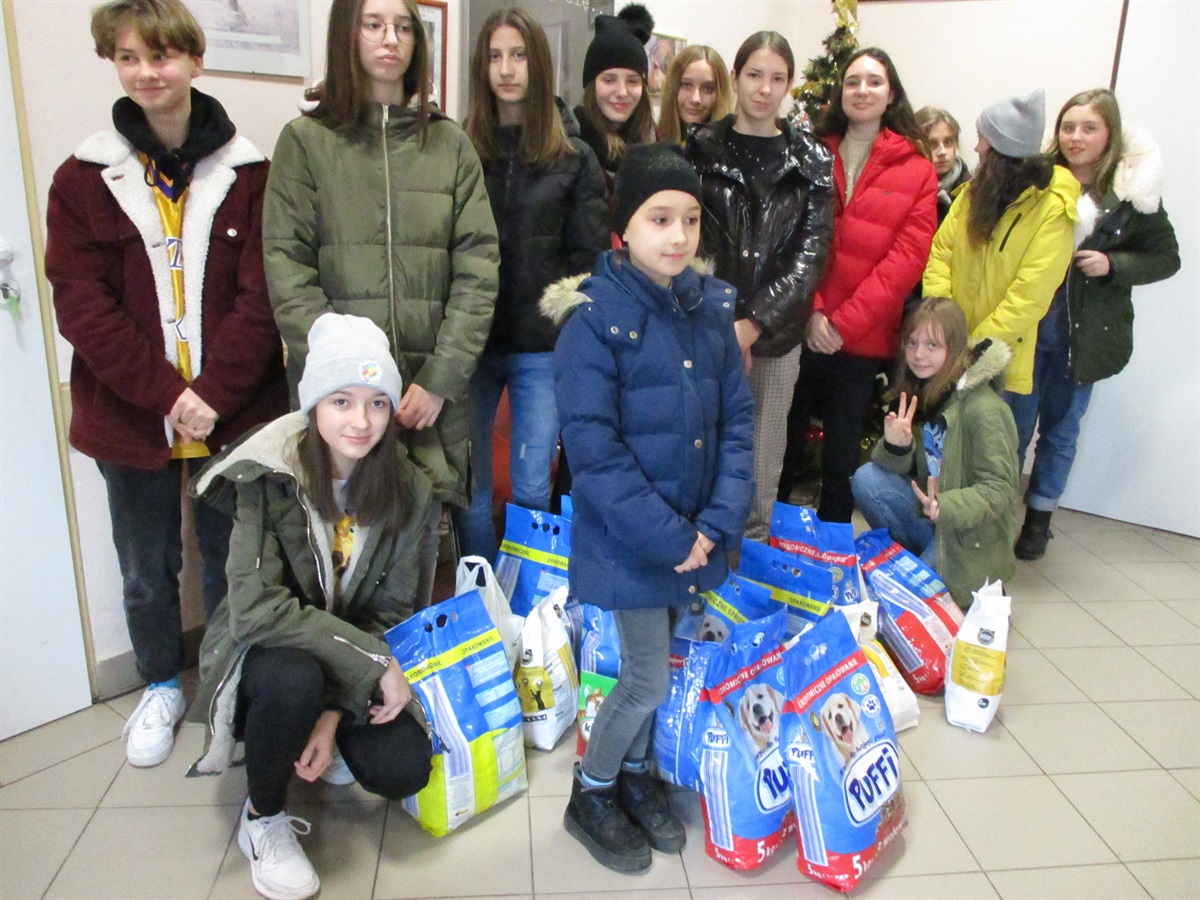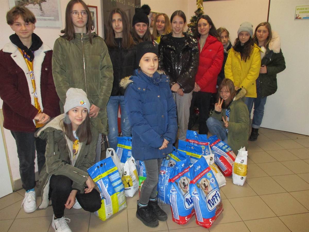 W dniu 17 grudnia członkowie Szkolnego Klubu Wolontariatu wraz z opiekunami dostarczyli do Schroniska dla Zwierząt w Piotrkowie Trybunalskim karmę dla zwierzaków. Karma została zakupiona ze środków, uzyskanych dzięki sprzedaży ciasta, podczas dyskoteki andrzejkowej. Całość przedsięwzięcia wiązała się z coroczną akcją "Wigilia dla zwierząt". Serdeczne podziękowania dla Rady Rodziców oraz Pani Dyrektor za wsparcie działań podejmowanych przez Szkolny Klub Wolontariatu.